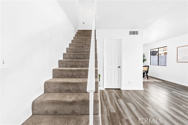 Light, bright, and spacious, this gorgeous townhome is upgraded throughout and move-in ready! Located in a quiet gated community, with luxurious modern conveniences and a private back yard, this home checks the boxes for the most discerning buyer. The remodeled kitchen and bathrooms, direct-access 2-car garage, upstairs laundry room, central A/C and heat, and water softener are some of the features that make this property unique. The first level features the living room, dining area, kitchen, and powder room, and opens seamlessly to the outdoors. With three spacious bedrooms upstairs, including a private primary suite with dual-sink vanity and balcony for outdoor access, a hall bathroom and laundry room, the floor plan is ideal. The sparkling community pool and spa make this home perfect for family fun and entertaining. Parking is plentiful and this home is located within close proximity to many Orange County attractions and destinations. Don’t miss this incredible opportunity!