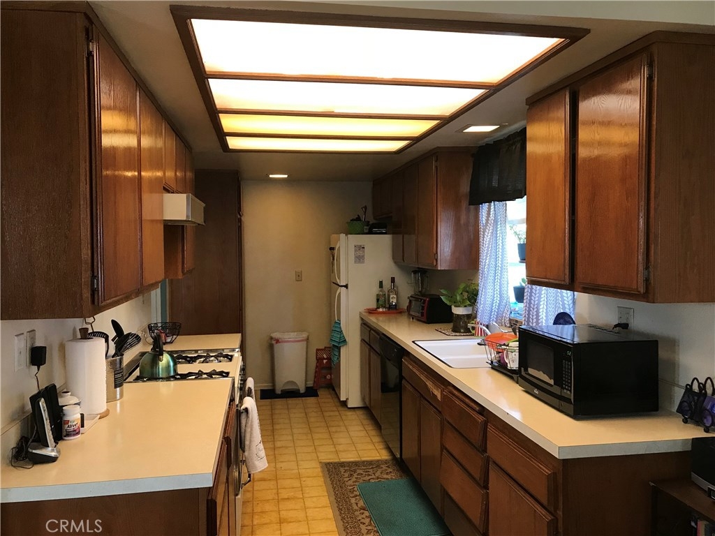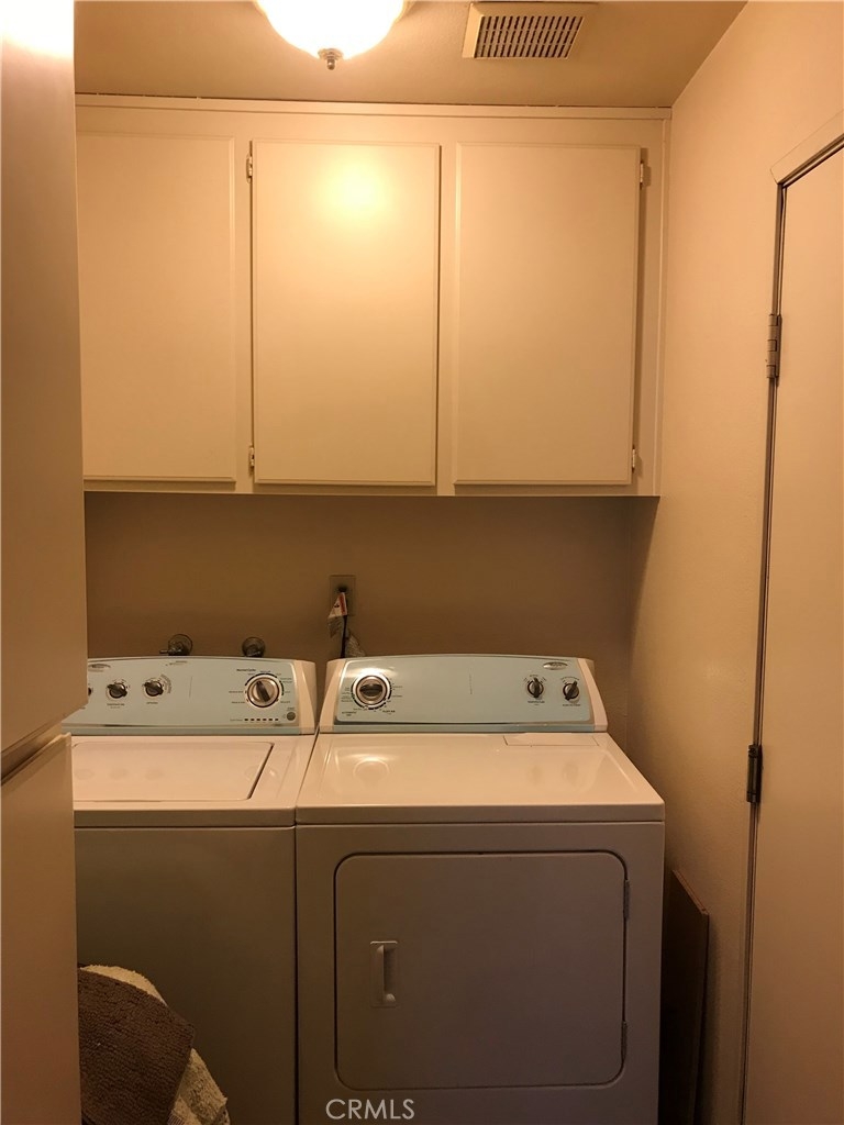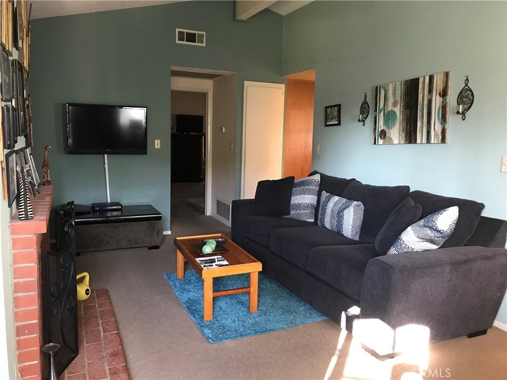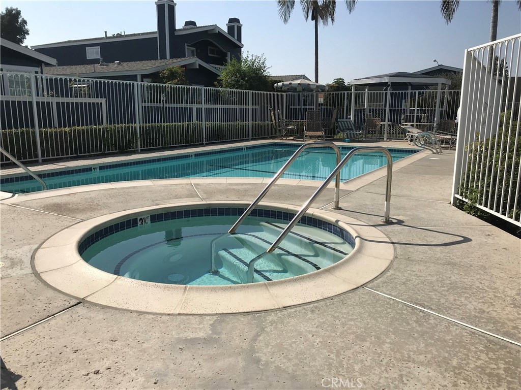 Must see this beautiful large 1 bedroom condo with extra oversized 2 car garage. Large bedroom with walk-in closet, living room with fireplace, dining area, separate laundry room adjacent to the garage. Beautiful Complex with amenities. Pool has recent renovation and can be viewed from the patio. Bell Street terminates at the complex, so it is a virtual cul-de-sac with no through traffic. Low association and no Mello-Roos make this truly one of Orange County's most affordable offerings. 12.5 miles to Huntington Beach, the beach. Minutes to the 22,91, and 5 freeways
