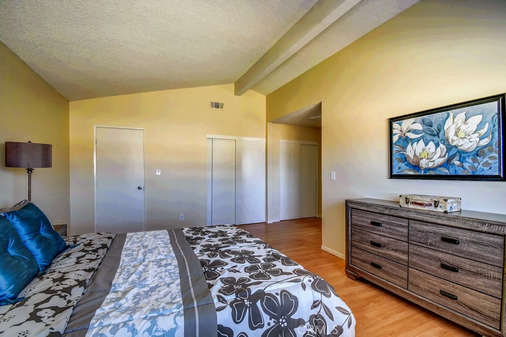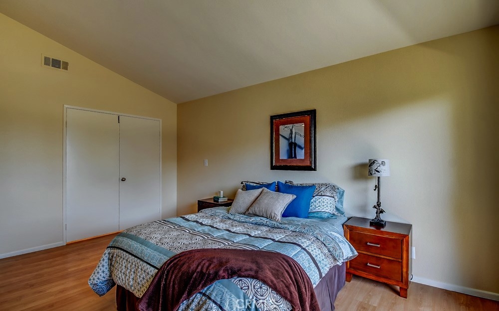 Large two bedroom condo in a great complex. This end unit is almost 1400 sq ft. It is located in a gated well maintained complex. The home has a two car garage with direct access to the unit. Both bedrooms have their own private bathrooms and tons of closet space. Features and improvements include; AC, laundry in garage, fenced private courtyard, balcony with green belt view, updated kitchen and bathroom, fireplace, tile floors downstairs, laminate floors upstairs, and cathedral ceilings.
