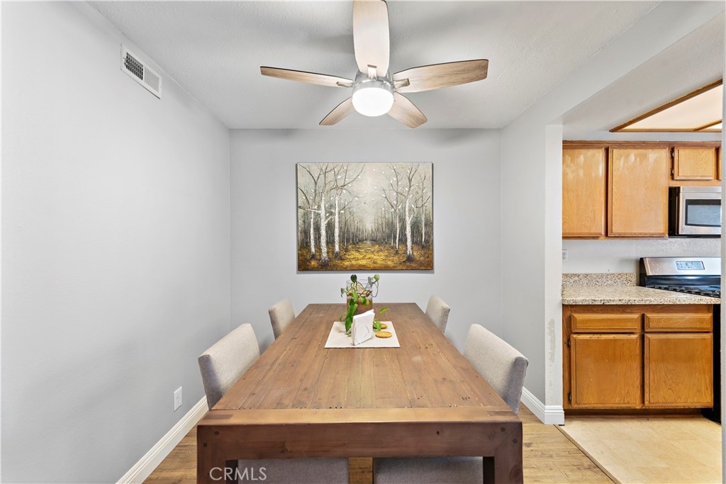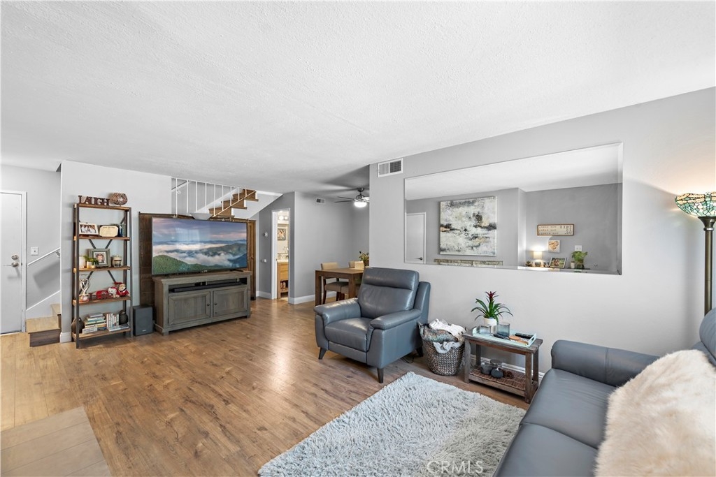 This is the ONE! This beautiful condo in the Bell Terrace community has a lot to offer. The downstairs living space is spacious and has been recently remodeled with fresh paint, an upgraded brick fireplace, and new flooring. The kitchen has granite counters, newer stainless steel appliances, and upgraded fixtures. The downstairs half bath has also been upgraded with a new vanity and mirror. Upstairs boasts two enormous bedrooms and two recently remodeled bathrooms. The master bedroom has a large closet area perfect for a big wardrobe. Laundry area is conveniently located upstairs. This home also has two private outdoor areas; the front, enclosed patio area with room for outdoor living furniture and bar be que, and a private balcony off of the master bedroom. This property also has a large two car garage. (Not shared) The complex is very nicely maintained with lush landscaping, a sparkling pool and spa, and a security gate for extra safety. The location of this unit is fantastic. Close to schools, shopping, and restaurants. Check the map, this home is located within 5 miles of the 22, 5, 91, 605, and 405 freeways.