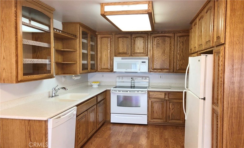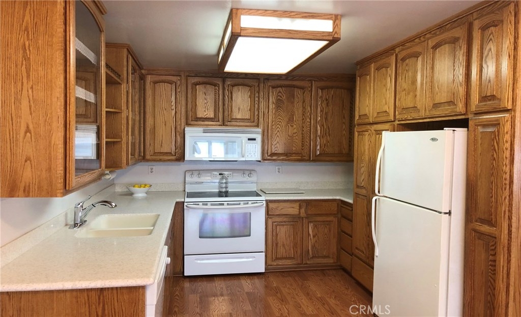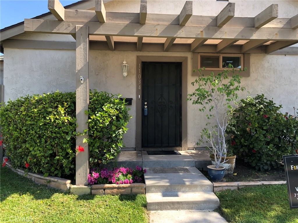 Rare find. A beautiful single level Bradford Place home on a corner lot in turnkey condition. With 2 large bedrooms, an updated bathroom with tub and shower, new laminate wood flooring, newly painted interior, ceiling fans in all rooms. There is an updated kitchen with built-in appliances including corian countertops, refrigerator, stove, garbage disposal and dishwasher. Sliding glass doors open onto a large patio room for extra living space. From the patio room is an area for plants and a barbeque. Beyond that is a 2 car detached garage with roll-up door and automatic opener. It is close to the association clubhouse, large swimming pool and play area. There is lots of shopping, public transportation, and the 22, 405 and 605 freeways are nearby. This one is a gem. Schools are in the outstanding Garden Grove District School. Bell Intermediate School and Pacifica High School are the junior high and high schools for this area. Probate listing, does not need court approval.