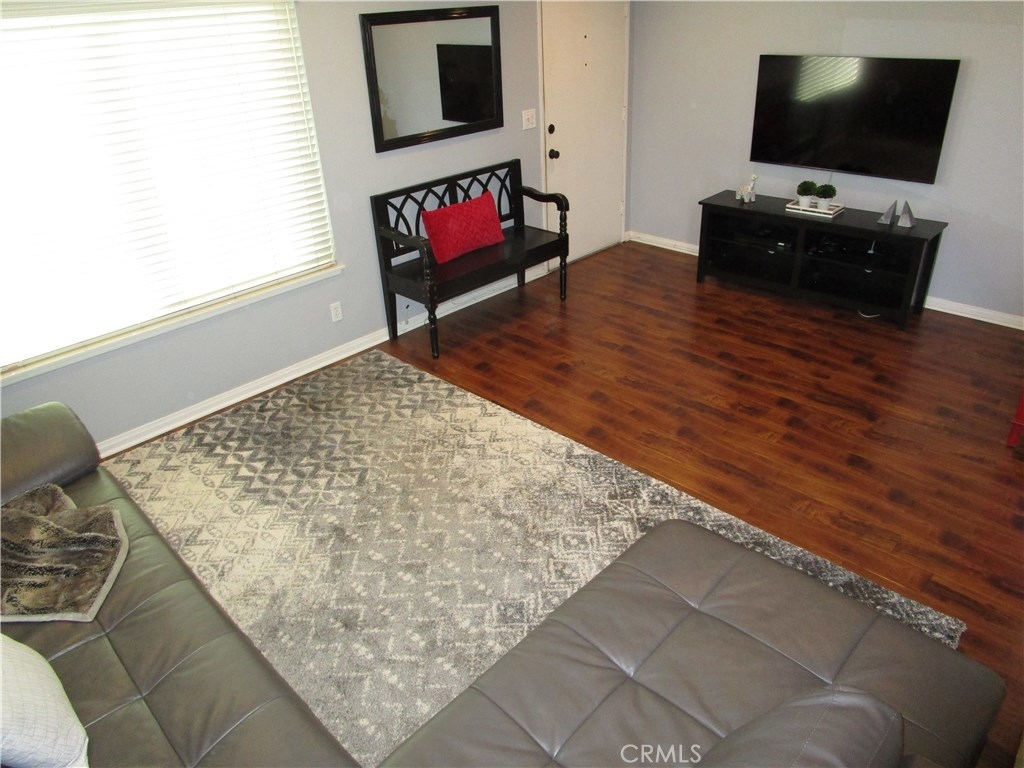 Welcome home!!! Rarely on the market corner end - unit, 3 bedroom, 1.5 bathroom, 2 car garage. Bradford place east townhouse community. This property features a master bedroom, remodeled kitchen with granite countertops & white cabinetry, stainless steel appliances, dual pane vinyl windows, scraped ceilings, recessed lighting, laminate wood flooring, remodeled upgraded bathrooms. This home also features Central air & heating, Nest Thermostat, water soft system, reverse osmosis drinking water filtration system, bonus patio sun room, & private quiet cozy patio area great for entertaining or to sit back relax & enjoy. Bradford place east community features beautiful landscaped green belt area's with park like setting trees & swimming pool. Property is conveniently located near area shopping center's, restaurants, 22 freeway, & the new "Stanton Central Park". Don't miss out on this one!