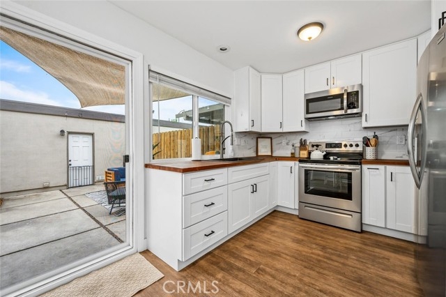 Welcome to Bradford Place. This beautifully updated townhome offers 3 bedrooms, 1.5 bathrooms, 1,159 square feet of living space, a private patio, and 2 car garage. Not a single corner was missed when this home was remodeled. The moment you walk into the home you're greeted by the spacious living room featuring newly updated water and scratch proof laminate flooring. Continue into the remodeled kitchen and dining area and enjoy whipping up your favorite meal on the Butcher Block countertops. Kitchen also offers a large farmhouse style sink, white shaker and soft closing cabinets, and a view of your private patio with a custom sun shade sail. On your way to the second floor, don't miss the newly updated bathroom that will have your guests complimenting it all day. Upstairs you will find the 3 large bedrooms that include new paint, laminate flooring throughout, and custom built California Closets. Additional features to note are new dual pane windows throughout the home, new ceiling fans in every room, fresh paint from top to bottom, new water heater, new garage door, a whole house fan, and much more. This home is immaculate and just a hop, skip, and a jump away from major shopping and major highways. Don't walk, run... or you'll miss out.