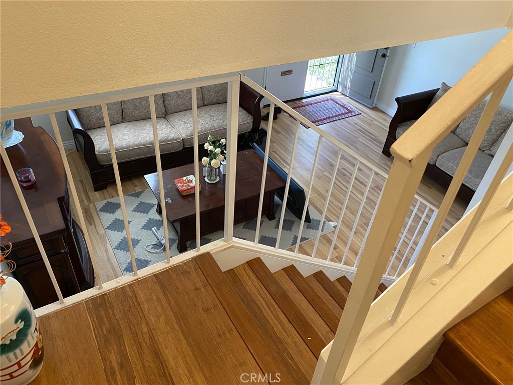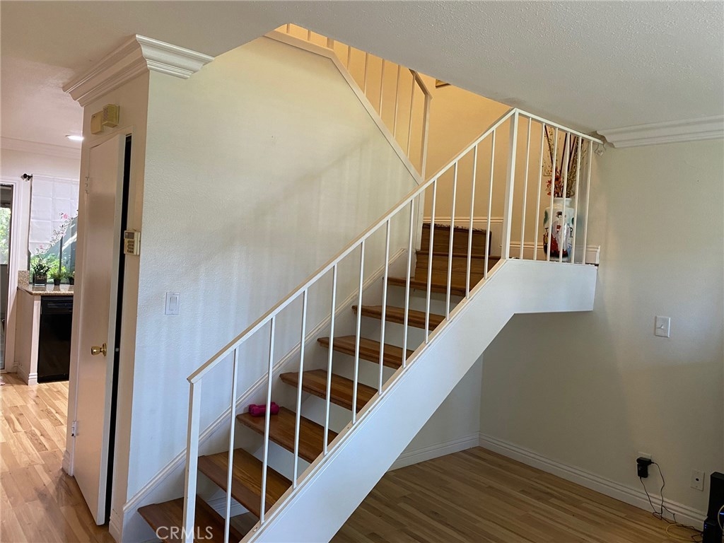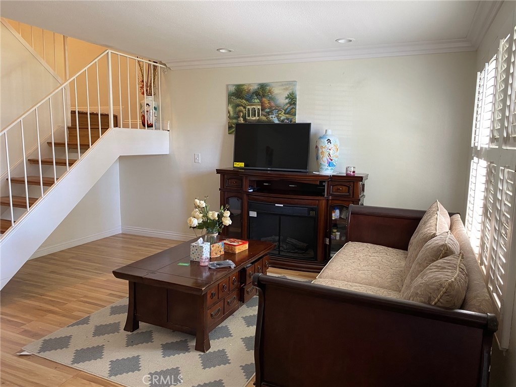 BACK ON THE MARKET...The buyer couldn't perform the loan because one of them was just laid off work. This Bradford Place two-story townhome is located in a very nice and quiet neighborhood. Beautiful home with entry double doors and the living room is with the recessed lights and crown moldings as well. There are new laminated floors throughout the house. A very spacious, fully enclosed patio can use as the fourth bedroom or the family room. There is a nice kitchen with granite countertops. All 3 bedrooms and 1 full bathroom are upstairs. There are 2 car garage attached to the back yard before entering the house. It is close to stores, supermarkets, restaurants... Must see.
