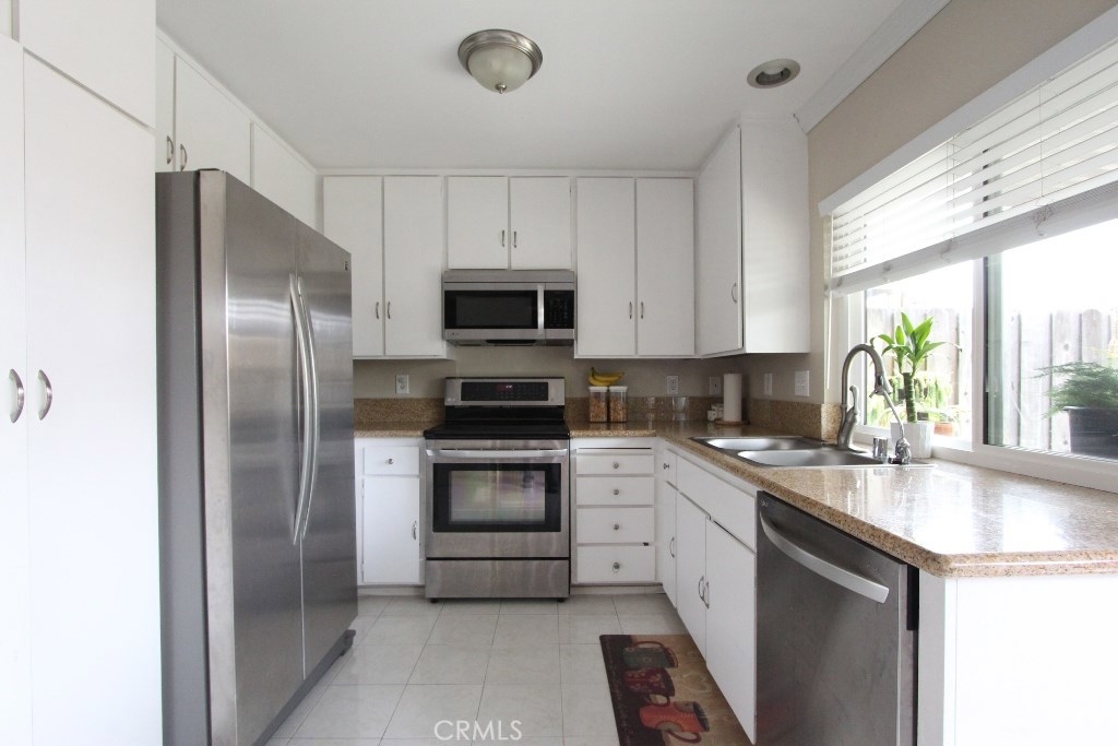 This beautiful Turnkey cute & cozy Town Home has been completely remodeled. You have nothing left to do except to move in and unpack your moving boxes. Brand new Laminate floors, bottom floor, stairs and all upper level Bedrooms. Master bedroom features walk-in closest and ceiling fan. New windows, crown molding, new paint, ceiling fan. A good size half bath downstairs with white Tile. Kitchen features Tile floor, Granite counter top & Stainless steel appliances. New sliding door leads to a nice yard for your small garden. Two car garage. Electric water heater and water softener. The unit exterior comes with new paint. This unit is located next to the playground so your young ones can enjoy. Conveniently located to schools, parks, shopping & freeway. This is a great starter condo with low HOA dues. Seller is sad to leave but family is growing.