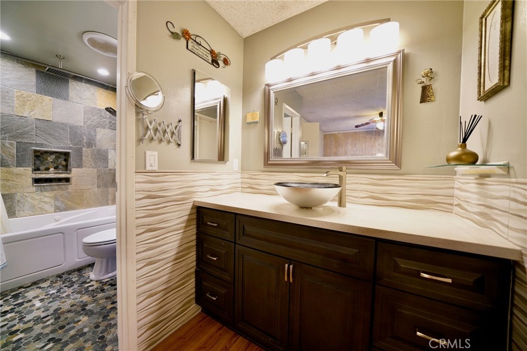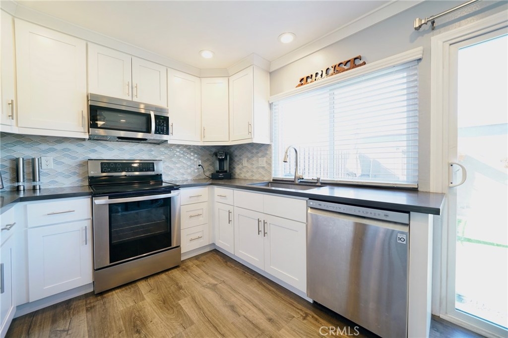 BRADFORD PLACE CHARMER - Located in a quiet area at the back of the popular Bradford Place community, this 3BR/1.5BA, 1159 sf turnkey home has been fully remodeled. Let's start with the kitchen/eating area: custom FX cabinets, quartz countertops, decorative tile backsplash, chair rail moulding, crown moulding, recessed lighting, ceiling fan, LG stainless steel appliances (microwave vent, too) and desk nook. The full bath boasts an American Standard jetted tub, rain shower head, stone flooring and recessed lighting. The master bedroom includes a versatile FX vanity with sink, walk-in closet and ceiling fan. Other notable features: wood-laminate flooring (zero carpeting) & dual-pane/vinyl-frame windows throughout, wood staircase and double-door entry. Turning our attention outside, we find a patio, a synthetic turf area and a hardscaped planter. The 2-car garage offers an insulated roll-up door with automatic opener, a laundry area and built-in storage. And, finally, enjoy the following Bradford Place amenities: expansive greenbelts, swimming pool, playground area and a clubhouse... See it today!