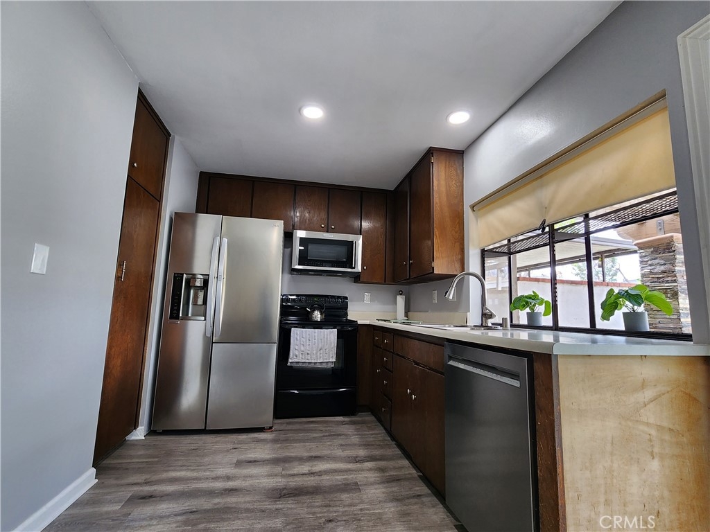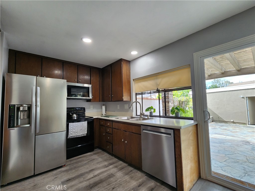 Welcome home!!! Light & Bright tastefully renovated, 3 bedrooms, 1.5 bathrooms, 2 car garage, Bradford place east community Towhome. This property boasts a fabulous location in the community. Inside the home features laminate wood flooring downstairs and in all the bedrooms. Enjoy the freshly painted interior, and smooth ceilings (no popcorn) throughout. Both bathrooms have been completely upgraded and remodeled. Lastly a beautiful large spacious Covered patio area with beautifully landscaped planter's. Great for entertaining or to sit back relax & enjoy. Conveniently located near Shopping center's, Restaurant's and local schools. Best of all award winning Garden Grove unified Schools, Pacifica high school & Bell intermediate. Don't miss out on this one!