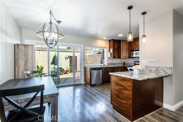 Welcome to 7070 Fulton, a beautifully remodeled 2-story townhome in the highly sought after Bradford Place Community. This open floorplan is perfect for entertaining with ample living space and modern finishes. The downstairs features a living room, dining area and kitchen with granite countertops and stainless steel appliances. Both bathrooms are updated with modern tile and fixtures. All three bedrooms are located upstairs. Additionally, there is a private courtyard with custom hardscape that leads to the 2 car garage where washer/dryer hookups can be found. Windows and doors have been upgraded throughout. Common area maintenance and trash are covered by the very low HOA. The community has a pool, spa and recreation room. This is a must-see you don’t want to miss!