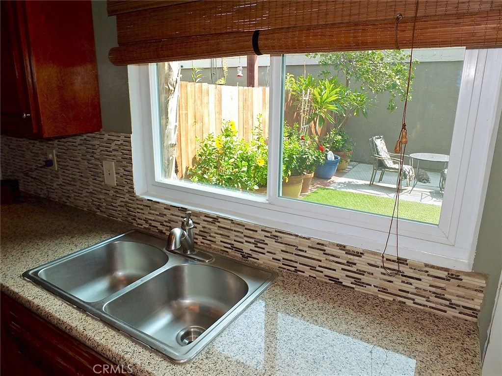 This lovely, quiet end unit town home is waiting to you to move in! Newly customized kitchen was taken down to the studs during the remodel! The kitchen complete with ample granite countertops and lots of cabinet space; overlooks the private enclosed patio. The newer appliances, fridge and washer and dryer, are included for your convenience. Both bathrooms have been updated with custom tile and granite countertops. Wood like laminate flooring is downstairs. All 4 bedrooms upstairs. A large private 2 car garage is just beyond the oversized patio. This complex is close to shopping and restaurants. Huntington Beach is only a 15-20 minute drive! The grounds are well maintained and tranquil. Once you arrive you will want to call the location home!