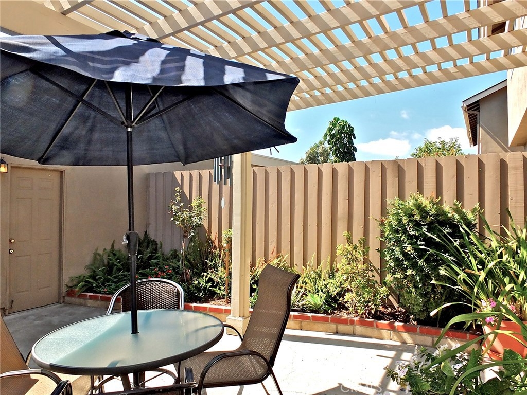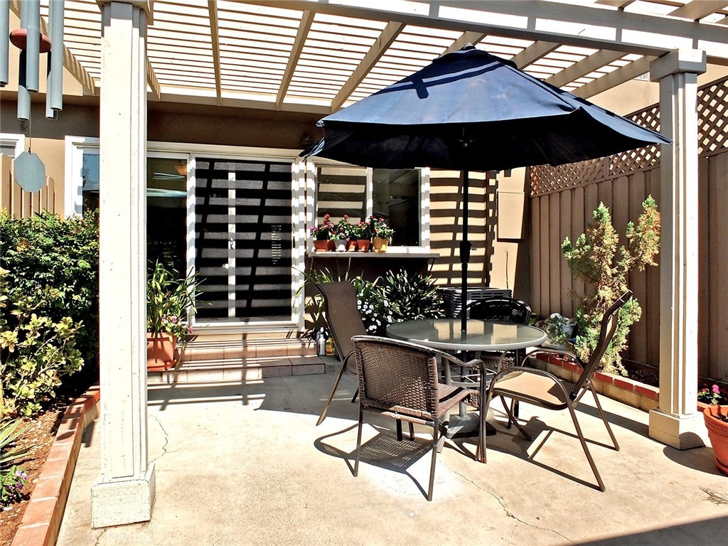 This cozy home boasts 3 bedrooms, 2 bathrooms, 2 car garage and AIR CONDITIONING! Central heat and air is rare to find and this home has it. When you step inside the front door you will notice the new paint throughout, plantation shutters, beautiful laminate wood floors and the open living space that is great for entertaining. This beautiful home features a remodeled kitchen, recessed lighting, ceiling fans throughout, newer raised panel doors throughout, brand new water heater, newer dual pane windows throughout, as well as a spacious patio area with pergola which is great for relaxing or for entertaining. This community features a pool, clubhouse, children's playground area and a park like setting with an abundant amount of beautifully landscaped greenbelts. It is conveniently located near restaurants, Starbucks, shopping centers, Disneyland and Knott’s Berry Farm. The school boundaries for this home land in the award winning Garden Grove School District Bryant Elementary, Bell Intermediate and Pacifica High School. The other great thing is that this home is eligible for FHA loans requiring little down payment! Welcome home!