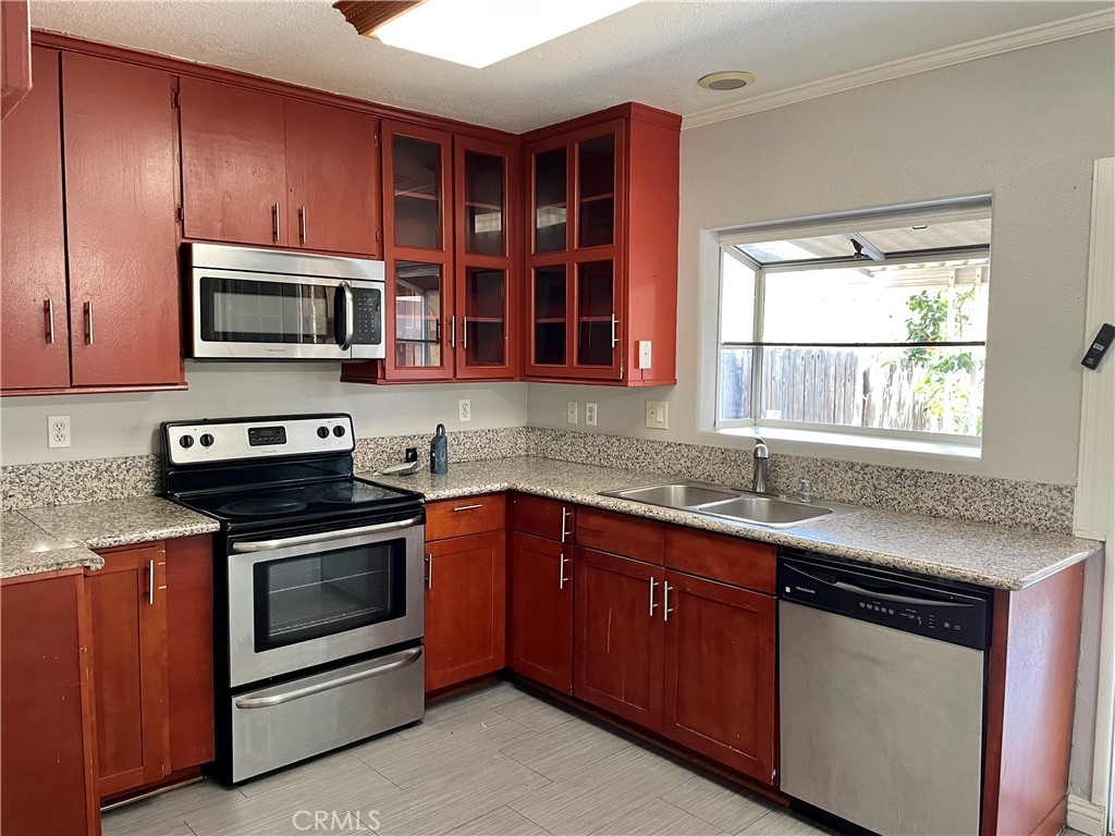 3 bedrooms 2 bathrooms 2 story condo located close to shopping and freeway. It has been remolded with newer shower, bath tub, granite counter top in kitchen and all stainless steel appliances. Open space floor plan directly connect to covered patio and private back yard. Ceiling fans in each bedroom. All bedrooms are upstairs with laminated floor and all down stairs has modern tile floor. Good size of master bedroom has walk in closet and access to bathroom. All double pane windows through the house. It has been newly painted. It has central AC system and 2 detached garage. Newer water heater and laundry hook up in garage. The condo is end unit only one side has neighbor, very private. Fruit trees in back yard to enjoy.