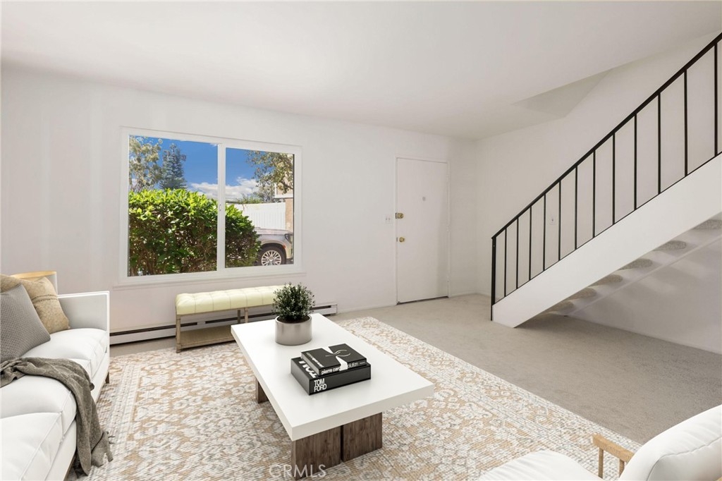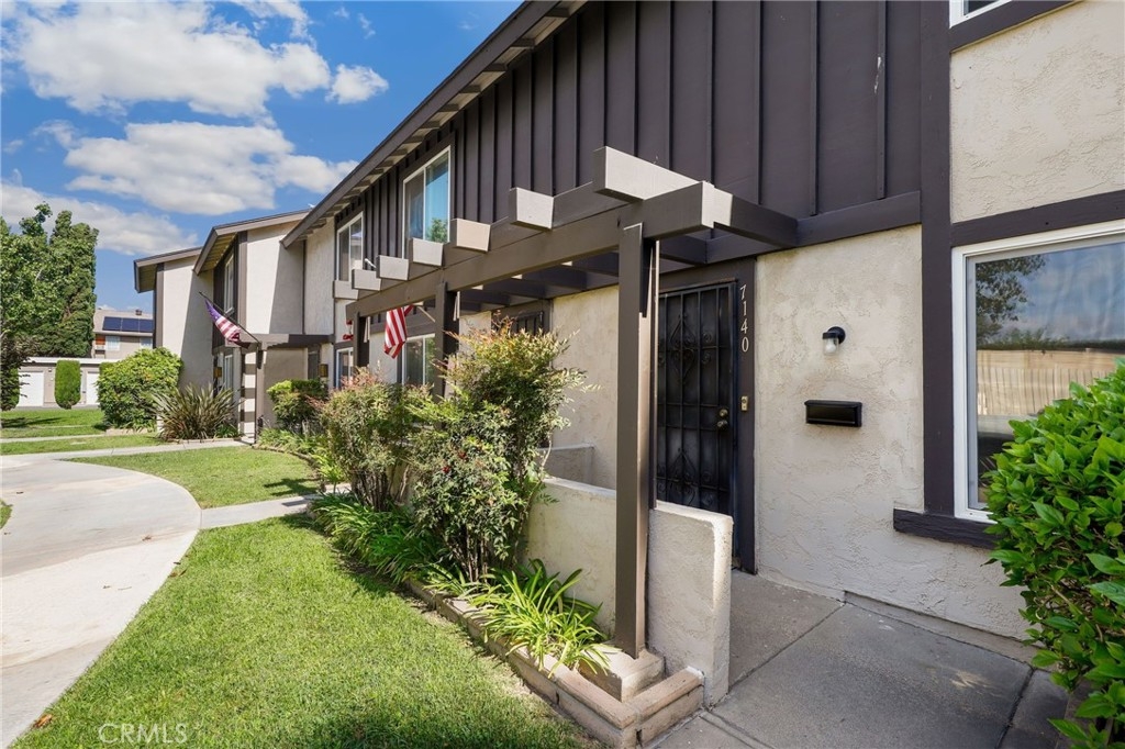Rare END UNIT home for sale in the highly desirable Bradford Place! Welcome to 7140 Kelton, ideally located end unit sharing only one common wall. Enter into a bright and airy open living space with freshly painted interiors, brand new carpet, and brand new dual pane Milgard windows throughout. Remodeled kitchen boasts new cabinets, new appliances, and plenty of cabinet space. Enclosed patio/sunroom provides additional space for entertaining, or using an additional family room, in-home office or even a gym! Patio provides direct access to the 2-car garage with new epoxy floors and laundry hook ups. Upstairs, you’ll find 3 spacious bedrooms and a full bathroom with new shower doors. Residents of Bradford Place enjoy low monthly HOA dues which includes trash, gardening, common area maintenance, sparking pool, spa and so much more. Convenient, central location near freeways, shopping centers and dining options, and zoned for excellent Garden Grove schools. Welcome Home!