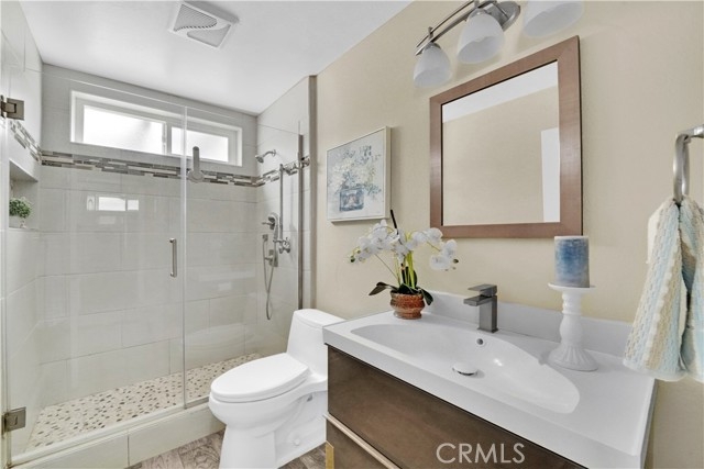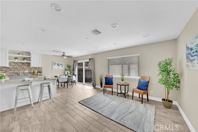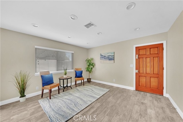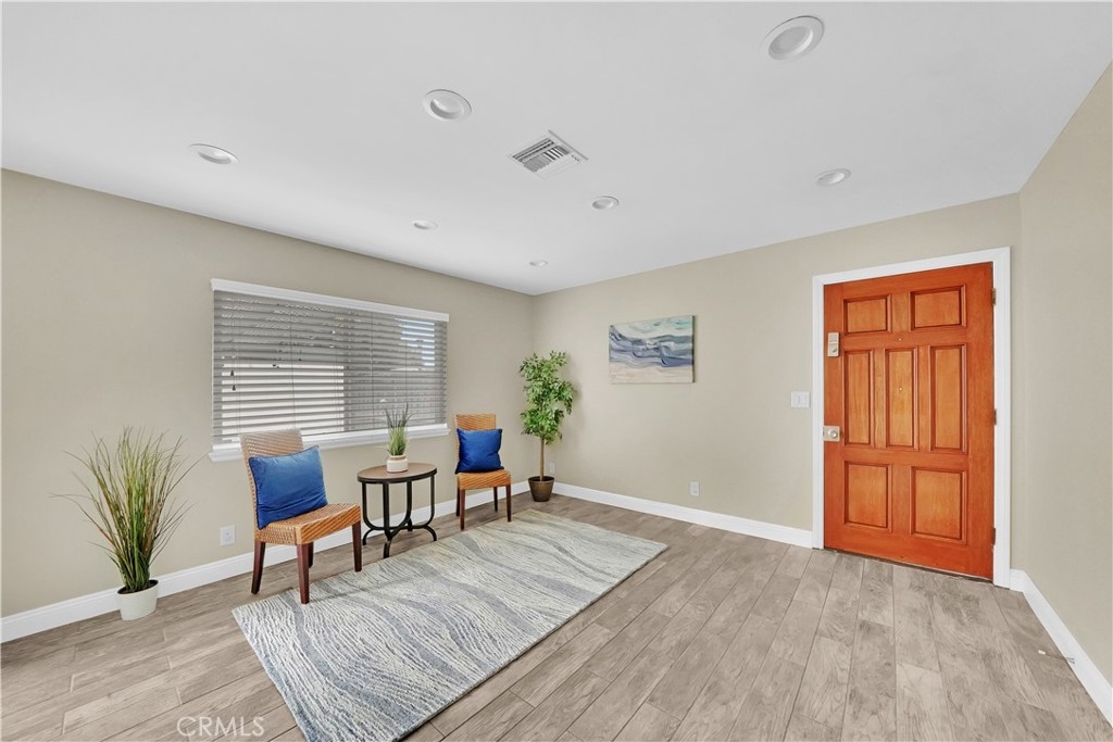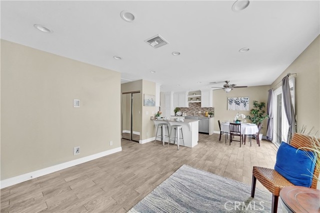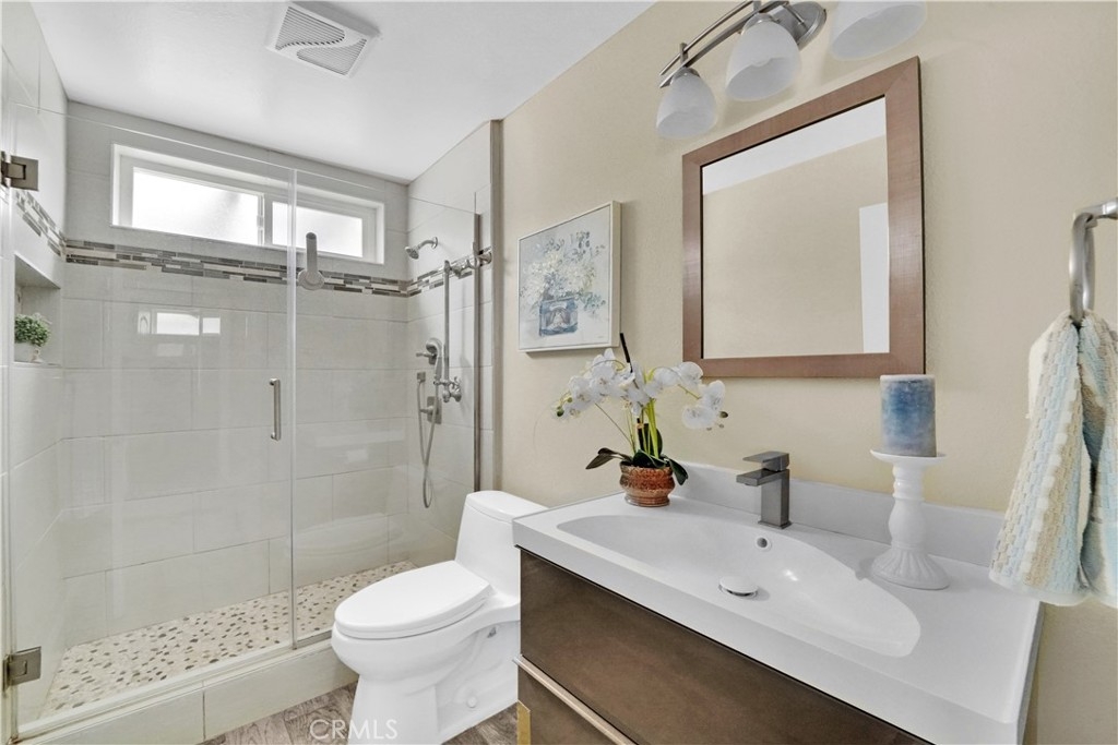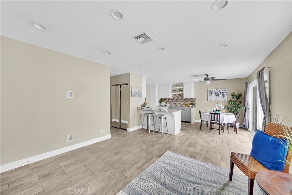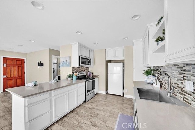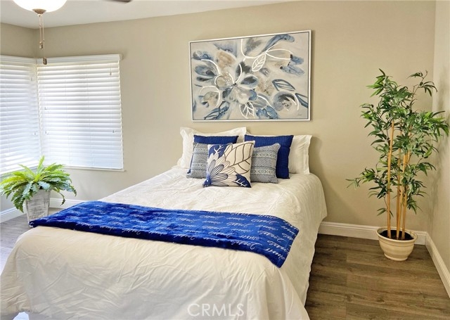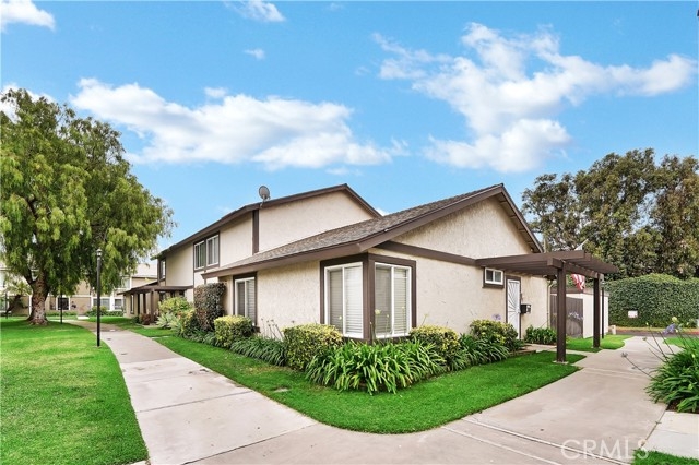 Absolutely Stunning Model-Perfect Single Story End Unit PUD Townhome - Actually Classified as a Single Family Home, Attached only on 1 Wall with No One Above or Below, Providing a Great Sense of Privacy. This Highly Upgraded 2 Bedroom 1 Bath Home Boasts a Sunlit Open Flowing Floorplan that feels Much Larger than its 850 Square Feet. Beautifully Appointed Throughout, it Features: Central A/C, Dual Pane Windows, Custom Window Blinds, Extensive Recessed Lighting, Wood-Grain Porcelain Tile Flooring, Engineered Wood Flooring in the Bedrooms, Raised Panel Interior Doors, Mirrored Closet Doors, Ceiling Fans, High Baseboards, and Designer Paint. The Remodeled Kitchen Boasts Quartz Countertops, Breakfast Bar, Glass Mosaic Tile Backsplash, Stainless Appliances, Including Dishwasher, Electric Range, Built-In Microwave, Premium Color-Finished Maple Cabinetry, Chic Open Shelving, and a Stainless Farmhouse Sink with Apron. The Kitchen is Open to the Dining Room and Spacious Living Room with Wall Cable & Mount for TV. The Completely Remodeled Bathroom Includes Newer Designer Vanity and an Oversized Walk-In Shower with Floor-to-Ceiling Porcelain Tile Walls with Inlay and Shampoo Niche, Plus Clear Glass Enclosure and Newer Fixtures. Sliding Glass Door Opens to the Charming Covered Patio - Perfect for Evening BBQ's and Entertaining. Direct Access Through Patio to the 2-Car Garage with Laundry Hook-Ups. This Fabulous Home is Located in the Highly Desired Community of Bradford Place with Acres of Lush Parkland, Playgrounds, Association Pool, Children's Pool, and Clubhouse. It is in the Award-Winning Garden Grove School District and Close to Shopping, Restaurants, Freeways, and a Short Drive to the Beach and Disneyland. If you are Looking for a Turnkey Home that Exudes Tons of Charm, this is it!!