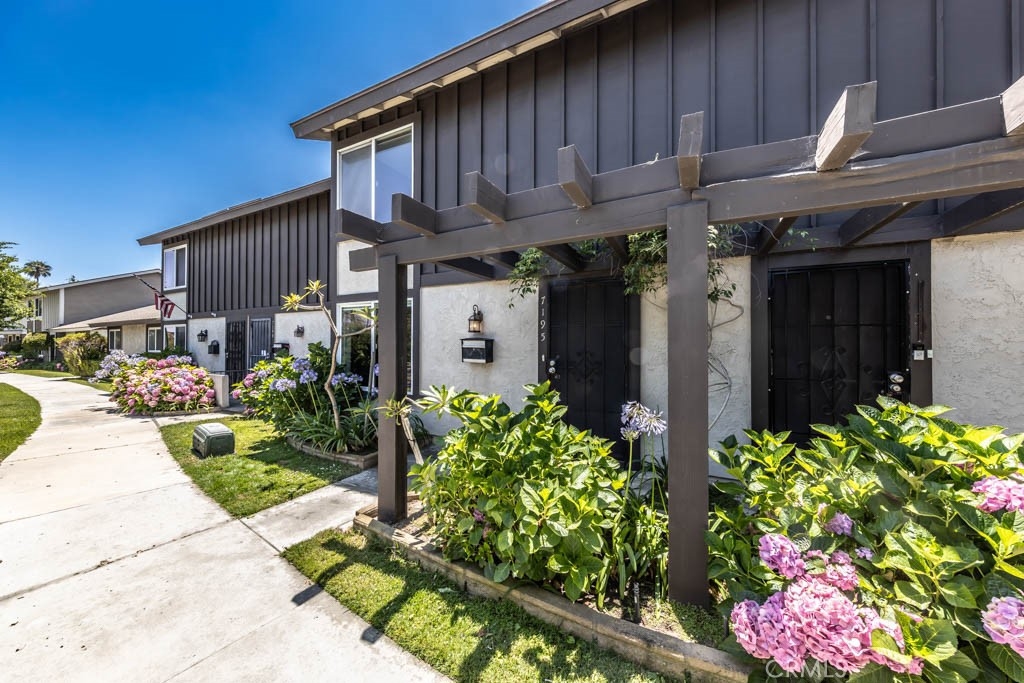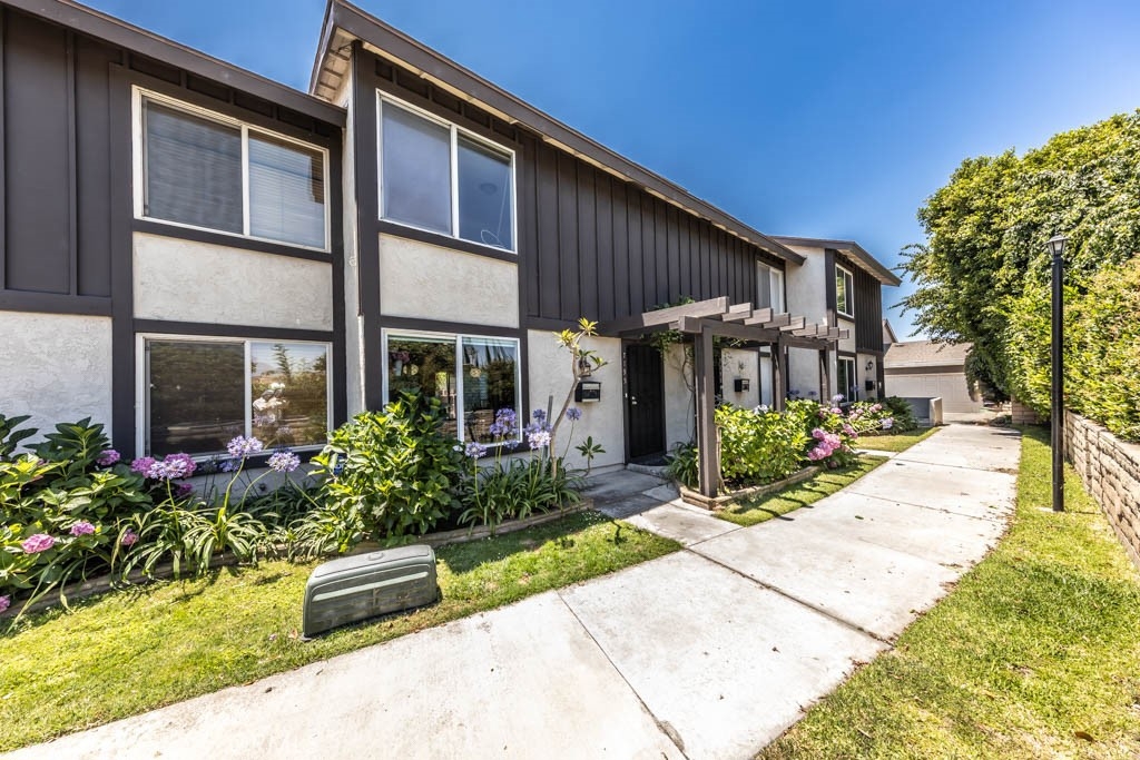 Welcome to this beautiful townhome located within the Bradford Place community in the city of Stanton. As you enter the first floor you will find an open living room, updated kitchen and dining area. Floors are decorated with large porcelain tiles. Decorative crown molding lines the entire property, recess lighting throughout the living area and a window for natural lighting. There is a half bathroom for your guest convenience. Heading to the 2nd floor you will find updated stairs steps and wrought iron design rails. All 3 bedrooms are spacious with newer dual panel windows, laminate flooring and crown molding. A spacious private patio for summer BBQs is nestled between the home and your private 2 car garage. The garage has an automatic door opener, plenty of room for storage and washer/dryer hookups. In addition to garage parking community offers 1 parking pass for over flow parking. Community offers low HOA fees, trash, gardening and amenities of a large pool, spa and recreation room. Centrally located to freeways, shopping centers, parks and part of an award winning school district of Garden Grove.