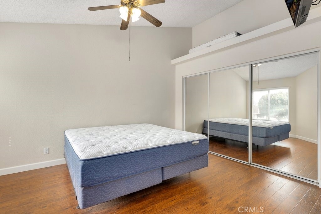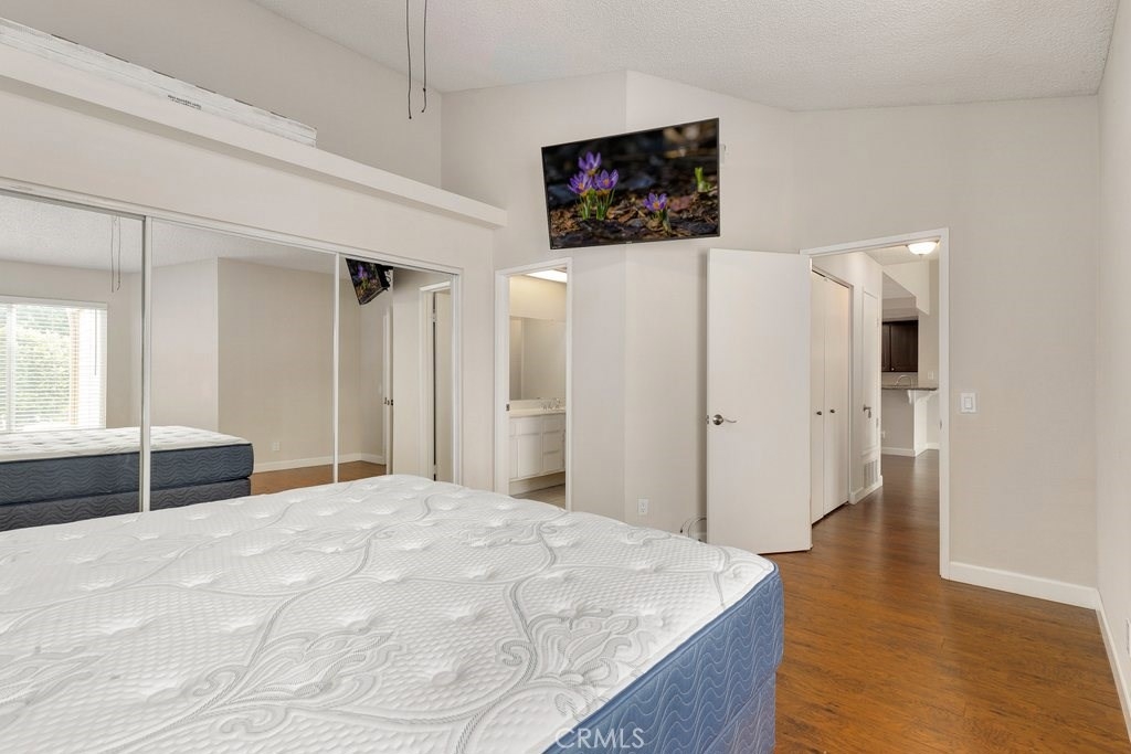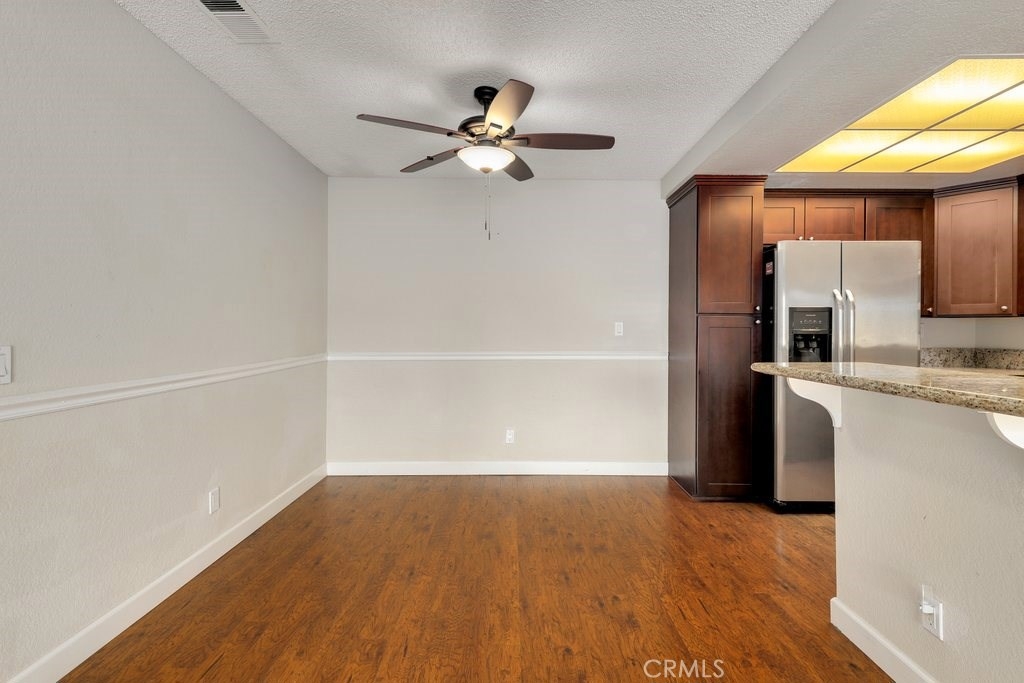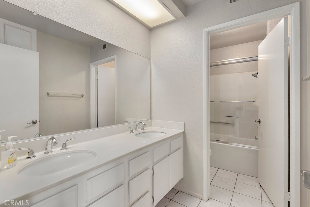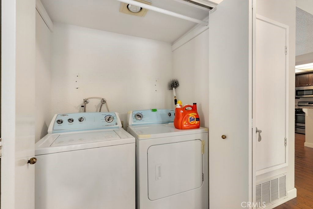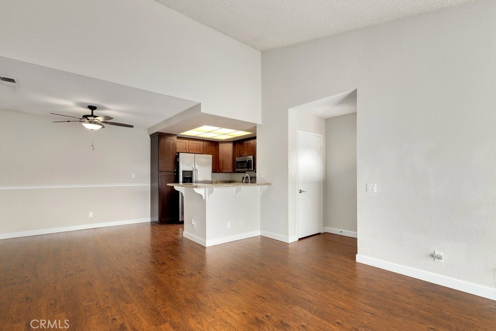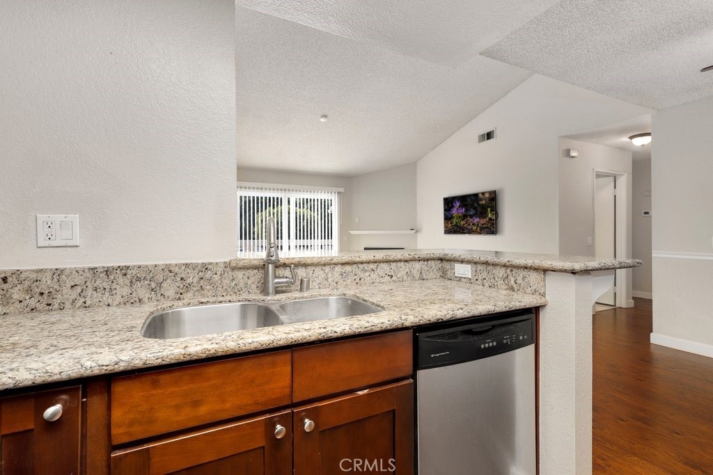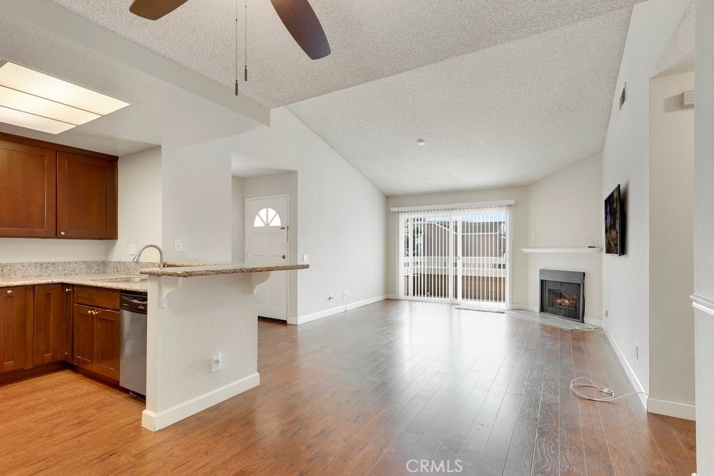 This affordable, remodeled upper level, single story is ready to move in! High vaulted ceilings provide a spacious, bright living area. Wood laminate floors compliment the bright and open floor plan. The living areas flow together seamlessly. The kitchen has been redone with wood shaker style cabinets and granite counter tops. It has a bar seating as well as a dining area. The living room has a cozy fireplace for those upcoming cool evenings and a balcony that overlooks a beautiful greenbelt. Two bedrooms and two baths allow privacy for both. The Master bedroom has vaulted ceilings and the en-suite bath, plus ample closet space! The secondary bedroom is a generous size and has access to the hall bath that is a jack and jill configuration. Both bedrooms have lighted ceiling fans and plenty of room for storage. In the hall is a convenient full size laundry closet.This gated community has an abundance of guest parking as well as your enclosed one car garage. Great location at the back of the complex. Briar Oaks has a community pool, gated access, and a convenient, central Orange County location. Close to schools, shopping and entertainment. Don't miss it!
