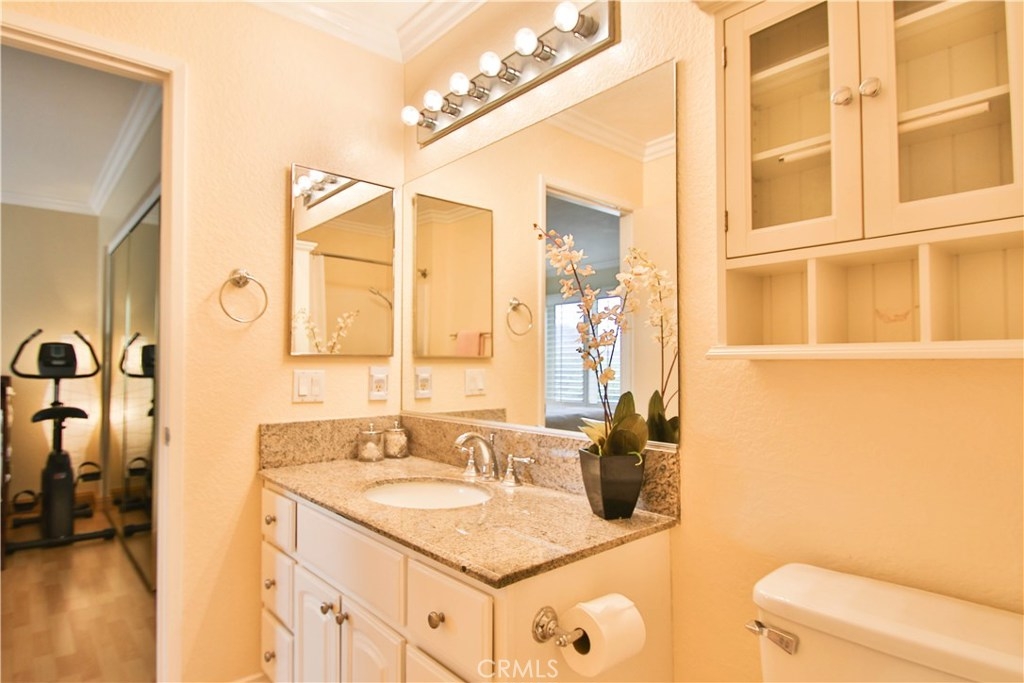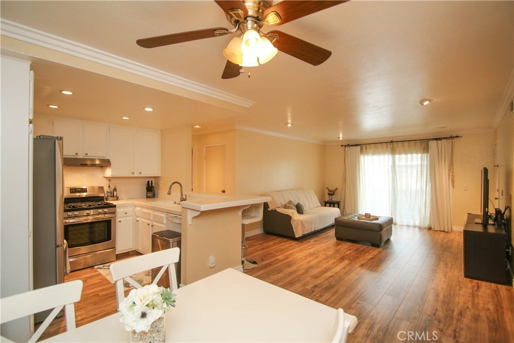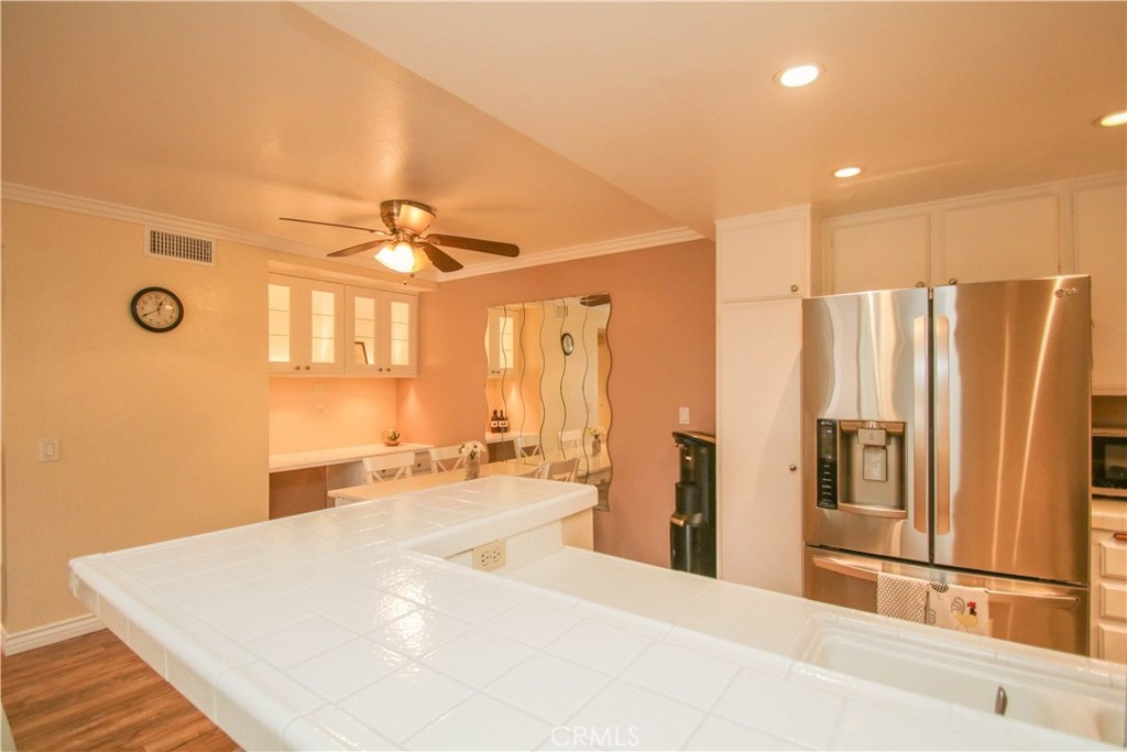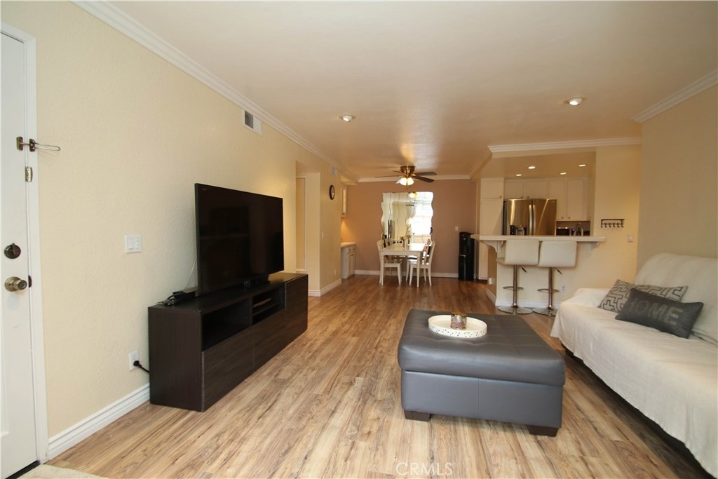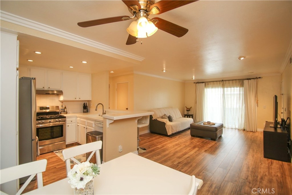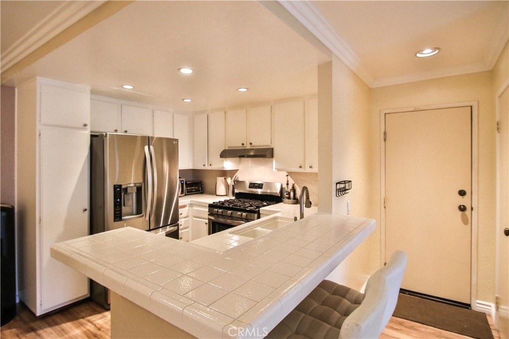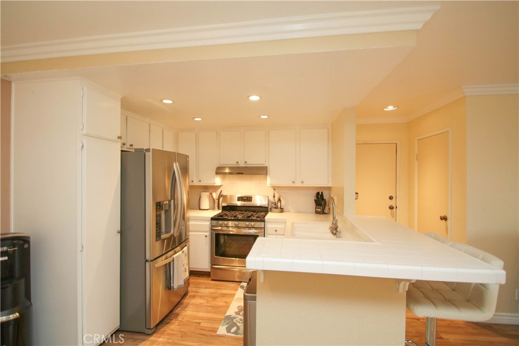Sweet Down stairs unit in Briar Oaks Gated Community. This is a two bedroom and two bathone is a Master Suite with two sinks and granite vanity. Open concept with white Tile counters and newer appliances the unit has been freshly painted with new base boards and Crown Moulding. The living room has new laminent flooring and open to the Kitchen and dining area with a sliding glass door leading to the outside patio and this has inside laundry. Walking distance to the Pool and spa for those hot summer days. Direct garage access and automatic gate with two entrances. Free basic cable and Show Time with Cable box is included in HOA