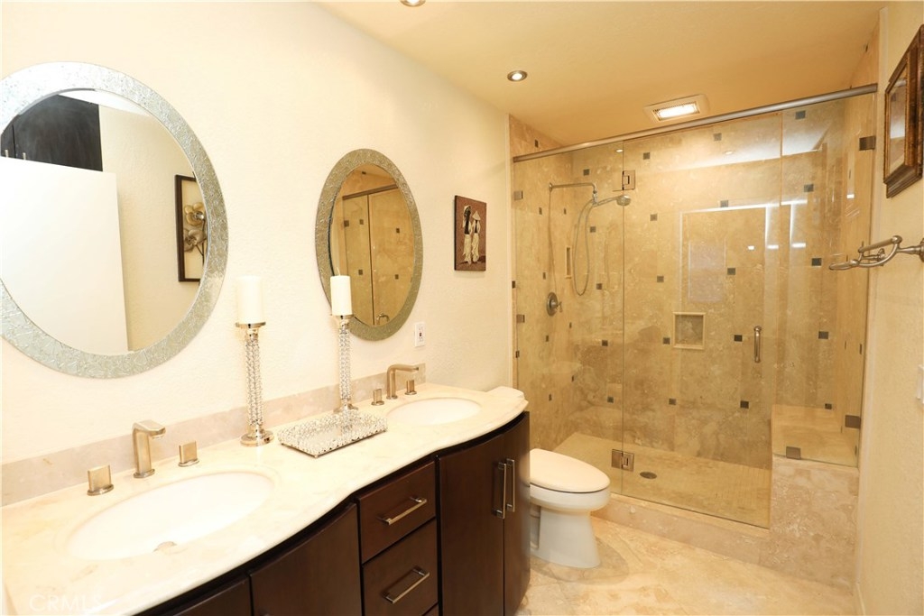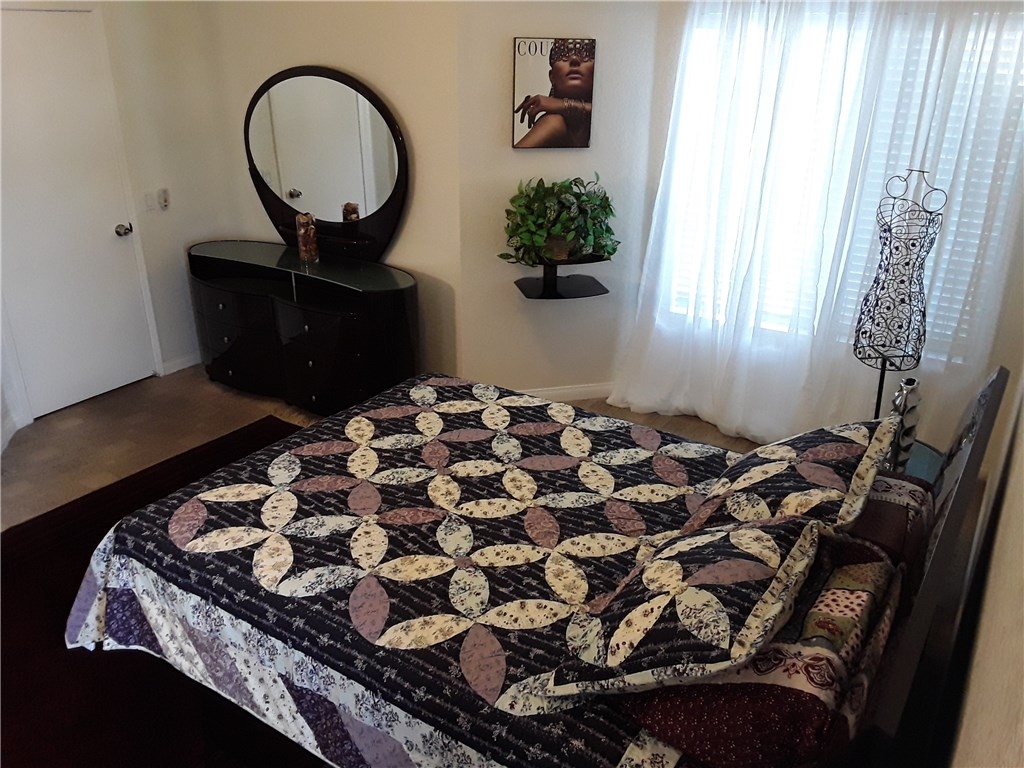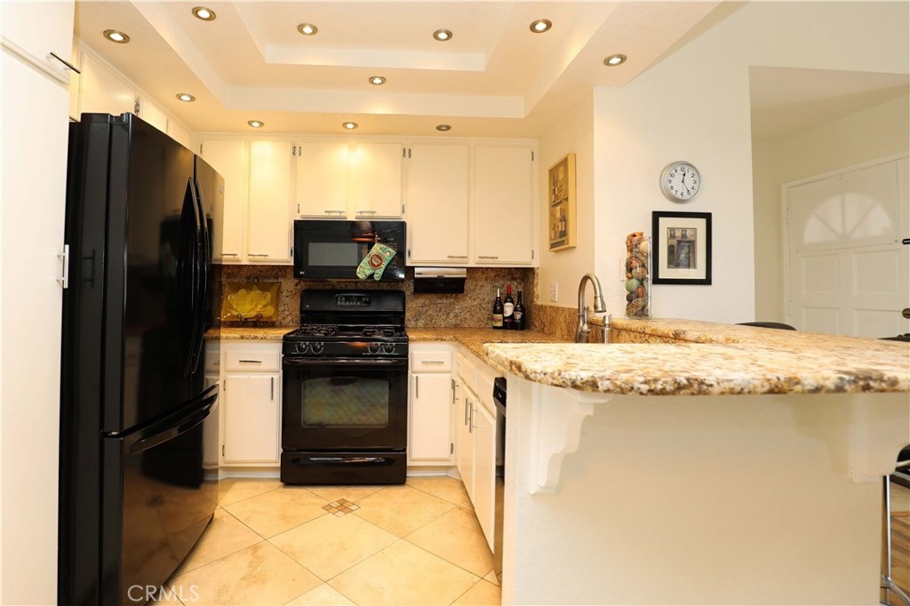 One of the most beautifully renovated 2 bedroom condos at Briar Oaks Community. A lovely upstairs end unit with an open floor plan, beautiful vaulted ceilings and multi levels of recessed lighting in kitchen area, along with granite counters and Travertine stone flooring. A spacious master bedroom with wall to wall mirrored sliding closet doors, 9 built-in shelves, 4 built-in closet drawers, double tiered clothing rods and Berber carpeted flooring. The master bedroom also has additional storage space above the wall to wall closet area. Gorgeous master bathroom with a custom glass shower enclosure, beautiful custom cabinets and recessed lighting. Additional bedroom has Berber carpeted flooring and large closet space with shelving. Living room has laminated hardwood flooring, access to balcony, gas fireplace and stylish shelves. Parking space assigned and unit also comes with an enclosed garage for additional parking. Briar Oaks is located in a child and pet friendly environment and is a well maintained gated community with an Association Pool, Sauna/Hot Tub and plenty of guest parking. Association fees are $279 monthly, which includes free Cable TV. Just minutes away from Adventure Parks and Shopping Malls. Purchase of condo comes with Refrigerator, Stove and LG Brand Compact Washer & Dryer.