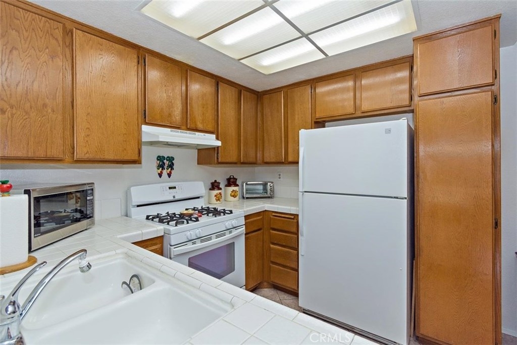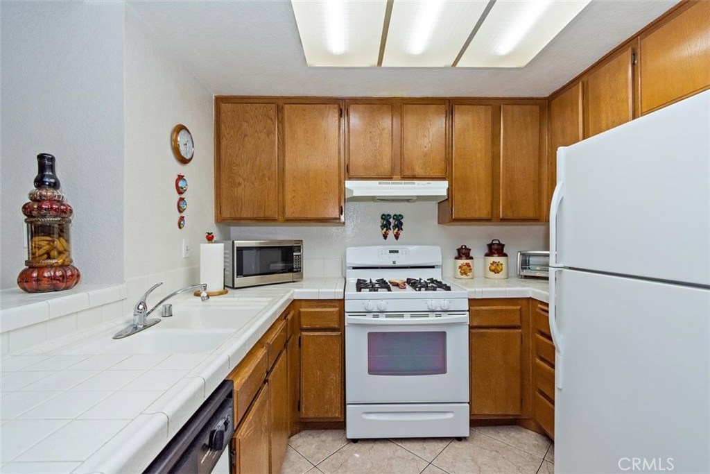 Welcome to this turnkey condo that offers a blend of comfort and convenience. The Briar Oaks is a beautiful gated community in the City of Stanton equipped with a pool, jacuzzi and plenty of guests parking. Upon entry to this upstairs unit, you are greeted with tile flooring that flows throughout the hallway, kitchen and bathrooms. The living room has vaulted ceiling that makes it spacious and opens to the balcony for entertaining and relaxing. The recently upgraded sliding glass door , blinds and dual pane windows bring in natural light to the home. The kitchen has tile countertops and wood cabinetry with ample storage space. The washer and dryer hook ups are in the enclosed closet along the hallway. The master bedroom has vaulted ceiling and a good size closet . A dual sink in the master bathroom makes it easy to prepare for your morning routines. The second bedroom has direct access to the hallway bathroom. A new central AC and heating was installed in 2015. The gas water heater was also newly replaced in 2016. This well kept condo comes with a 1 car garage below the unit and 1 uncovered assigned parking space a few steps away. Make this beautiful condo your new home before somebody else will...