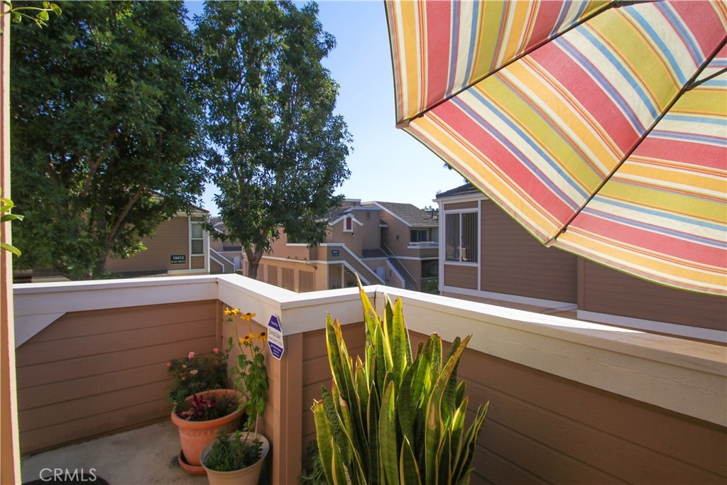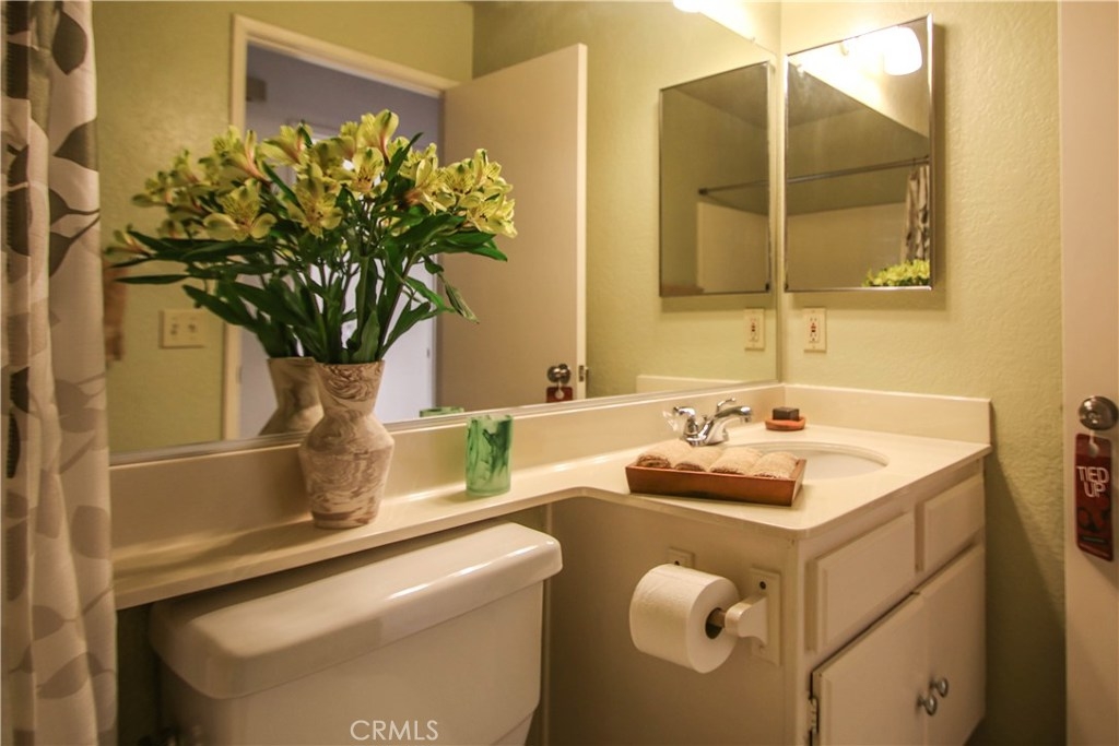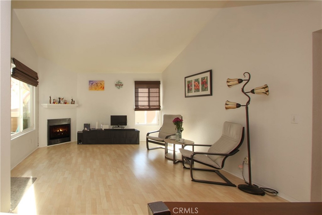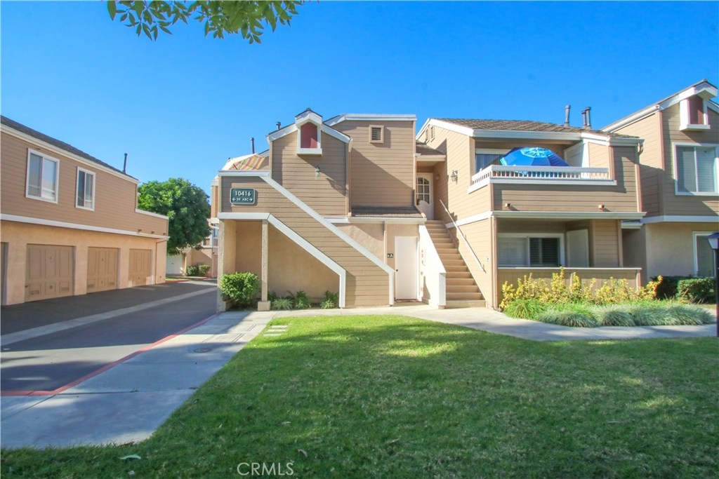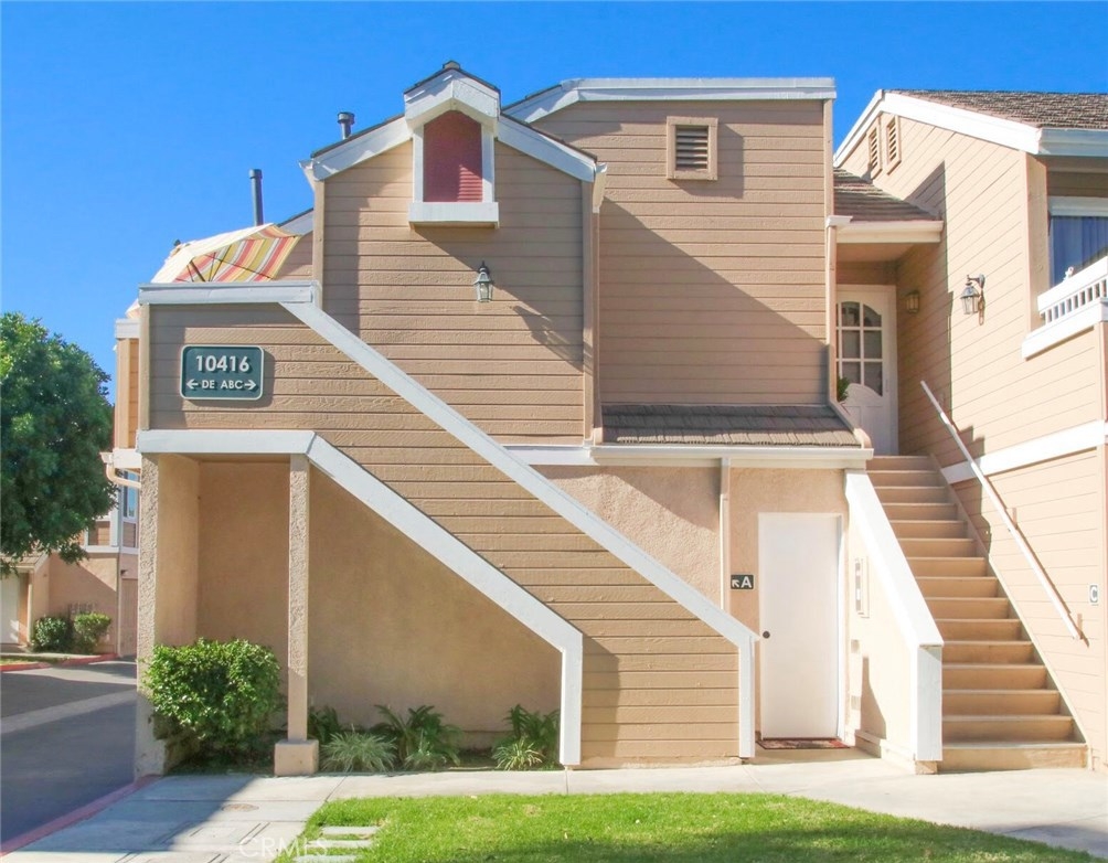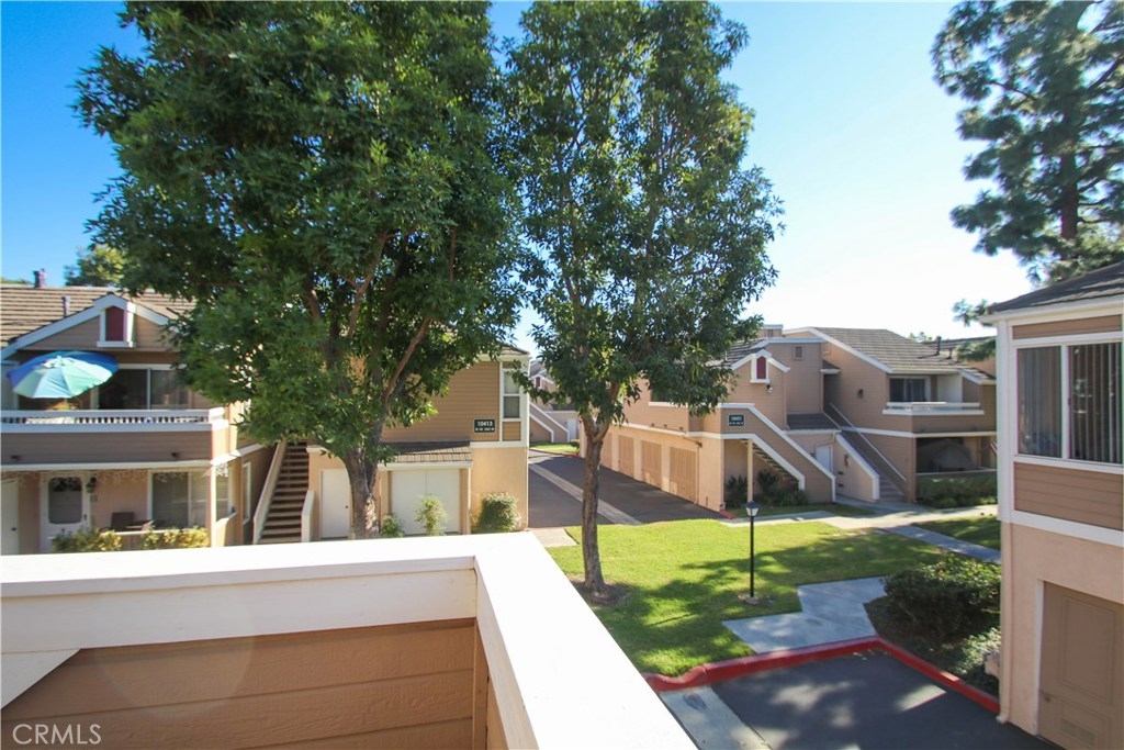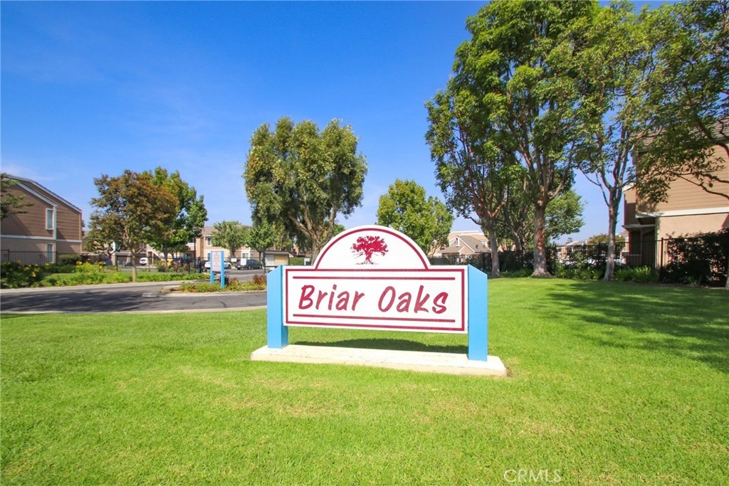 Open and airy Second level Condo in the Gated Community of Briar Oaks. Sought after sweet two bedrooms with two full baths which has so much to boast about. Central air and heat, freshly painted, engineered hardwood in spacious Master suite and second bedroom. Pergo wood flooring throughout the rest of the unit except for the tiled bathrooms. The kitchen is updated with newer recess lighting and quartz counter tops and pergo flooring. Newer double pane windows and screens. This unit has the laundry hookups in closet on balcony. The balcony has views of complex and is a larger space than other units. Living room is open to dining room and it has a gas fire place and custom made mantle. One car garage at bottom of stair case with one assigned parking spot plus plenty of guest parking. HOA has lower fees that include Cable TV, pool, spa and park like grounds. Large attic space as well as storage. Several Parks and attractions near by like Knotts Berry Farm, Adventure City and the infamous Disneyland.