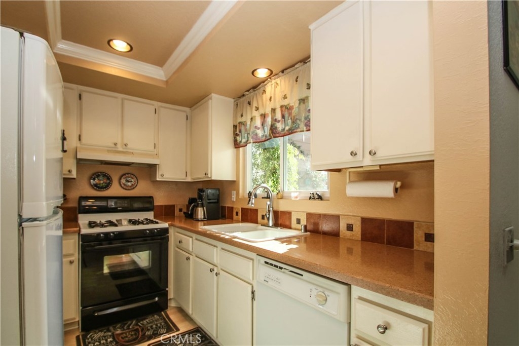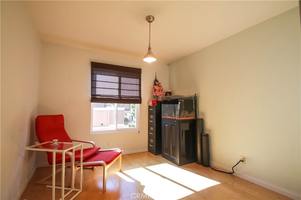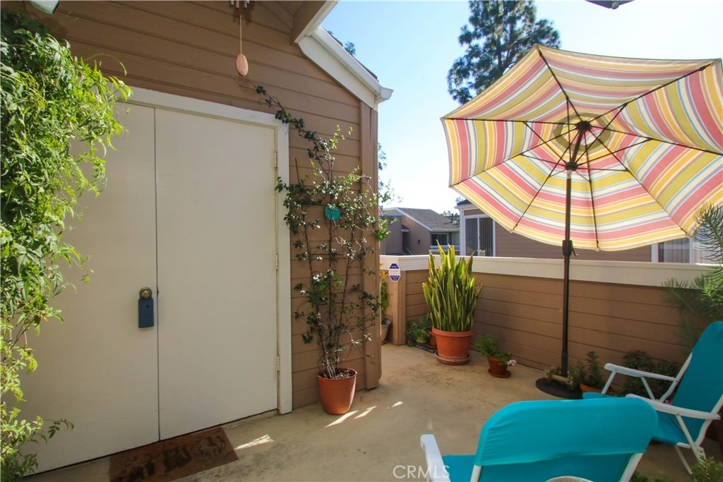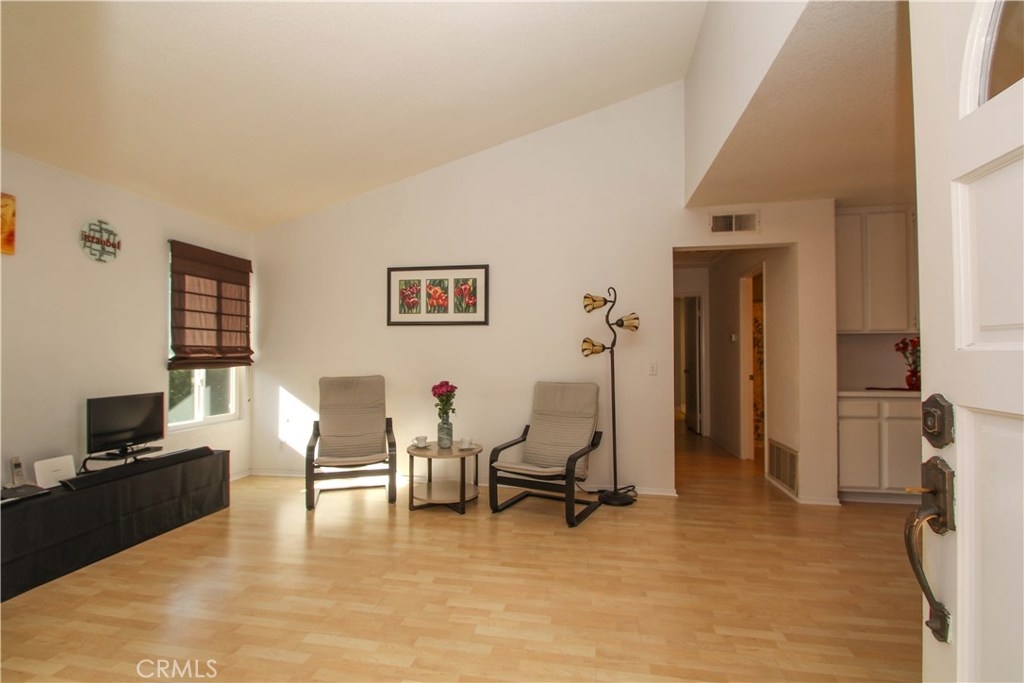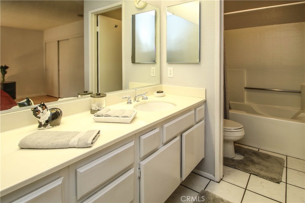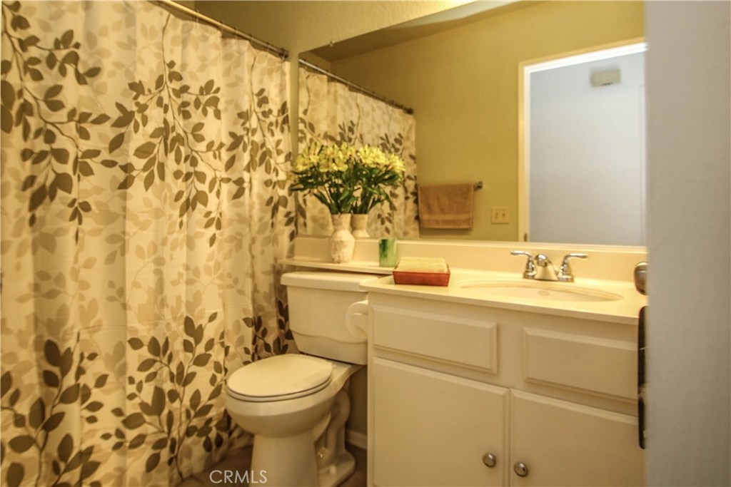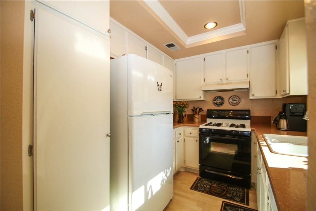 Open and airy Second level Condo in the Gated Community of Briar Oaks. Sought after sweet two bedrooms with two full baths which has so much to boast about. Central air and heat, freshly painted, engineered hardwood in spacious Master suite and second bedroom. Pergo wood flooring throughout the rest of the unit except for the tiled bathrooms. The kitchen is updated with newer recess lighting and quartz counter tops and pergo flooring. Newer double pane windows and screens. This unit has the laundry hookups in closet on balcony. The balcony has views of complex and is a larger space than other units. Living room is open to dining room and it has a gas fire place and custom made mantle. One car garage at bottom of stair case with one assigned parking spot plus plenty of guest parking. HOA has lower fees that include Cable TV, pool, spa and park like grounds. Large attic space as well as storage. Several Parks and attractions near by like Knotts Berry Farm, Adventure City and the infamous Disneyland.