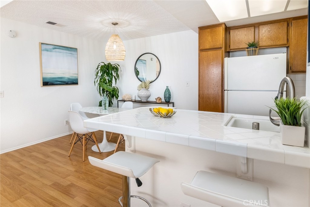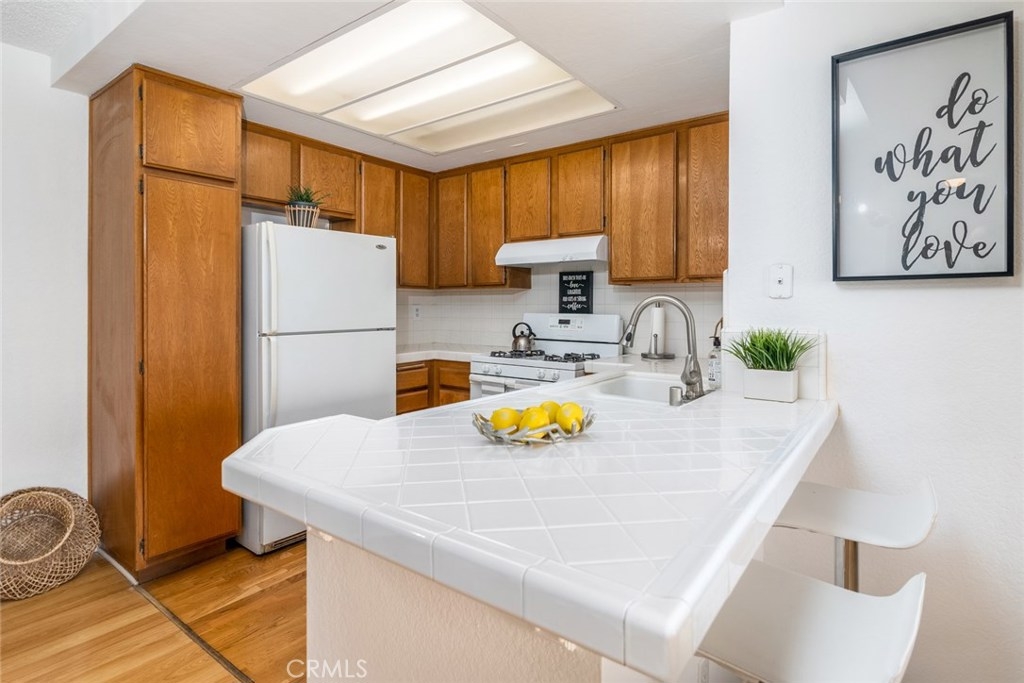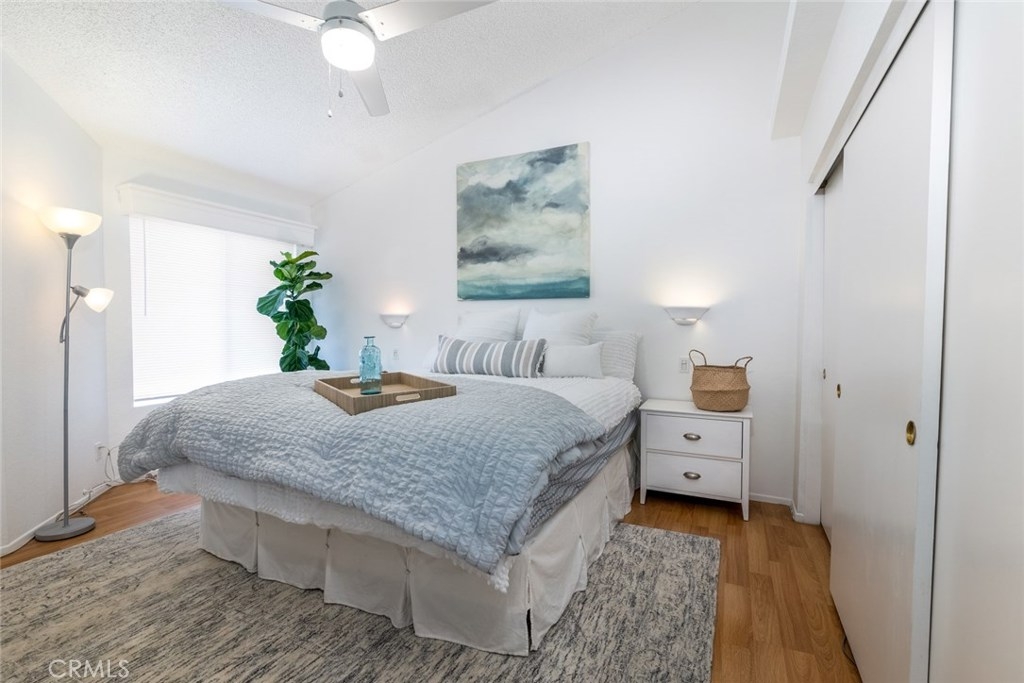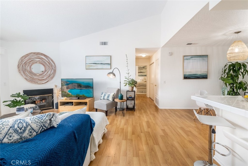 Step inside this bright and airy, open concept home. This layout is perfect for entertaining guests, as the patio is located directly off of the living room. Nestled on the 2nd floor, this unit is extremely private and boasts breathtaking sunrises and sunsets. Both the master bedroom and the second bedroom are spacious with high ceilings and both have attached bathrooms. You will see laminate flooring throughout, a gas fireplace in the living room, and washer/dryer hookups located inside of the dwelling. Don't miss the opportunity to live in this desirable gated community, walking distance to restaurants, Home Improvement Centers, and 15 minutes from the Long Beach airport. Come make this turnkey beauty your home.