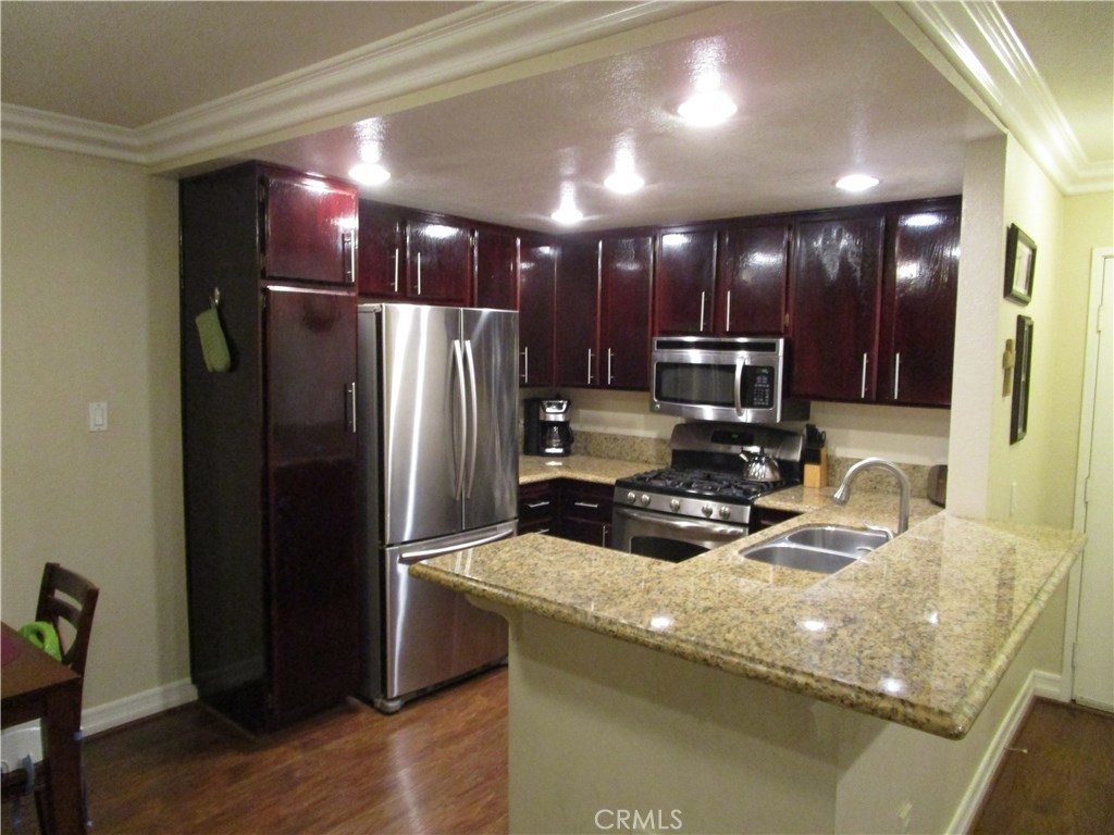 Home Sweet home! Rarely on the market! Downstairs single story 2 bedroom, 2 bathroom, single car garage attached with direct access. Situated in the desirable Briar Oaks Community. This lovely home features a spacious open floor plan. Central Air conditioning and heating, remodeled kitchen with custom cabinets, granite counter tops, and recessed lighting. In addition remodeled upgraded bathrooms, Spacious master bedroom, ceiling fans, Inside laundry, bonus storage walk in closet. Lastly featuring a covered patio area. This community features Pool and Spa, lots of guest parking, cable and high speed internet included with H.O.A. Conveniently located near Restaurants, Shopping center's and the Stanton Central Park. Don't miss out on this lovely home!