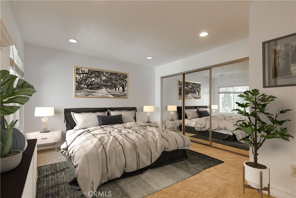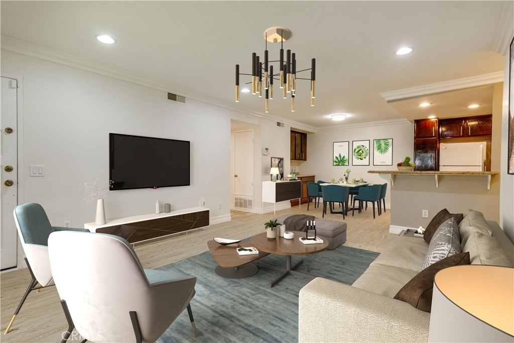 Welcome to this amazing home in the City of Stanton. Downstairs single story home with 2 bedrooms and 2 bathrooms along with an attached single car garage with direct access and one parking space belong to the unit. Located in the well desired Briar Oaks Gated Community. Entering the unit to an expansive living room connected conveniently to the dining area and the kitchen. Central air conditioning and heating, new hardwood flooring & carpets add value to the home. Ample cabinet spaces within the kitchen for extra storage along with a separate storage area for convenience. A separate Washer and Dryer area is located in the hallway for easy chores. The spacious master bedroom is connected to the master bathroom. The covered patio area is accessible via the living room. This community features a swimming pool and spa and lots of guest parking. Conveniently located near familiar restaurants, shopping centers, and Stanton Central Park. Don't miss this great opportunity! FHA approved Community The Inside condo Photos Virtually staged