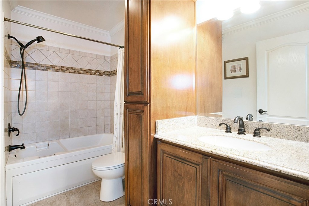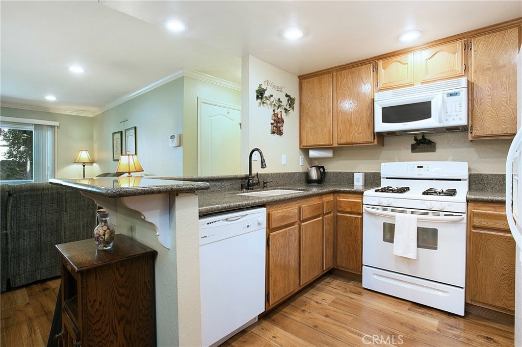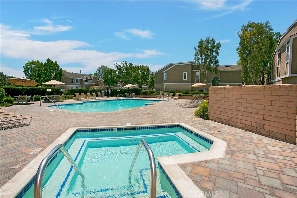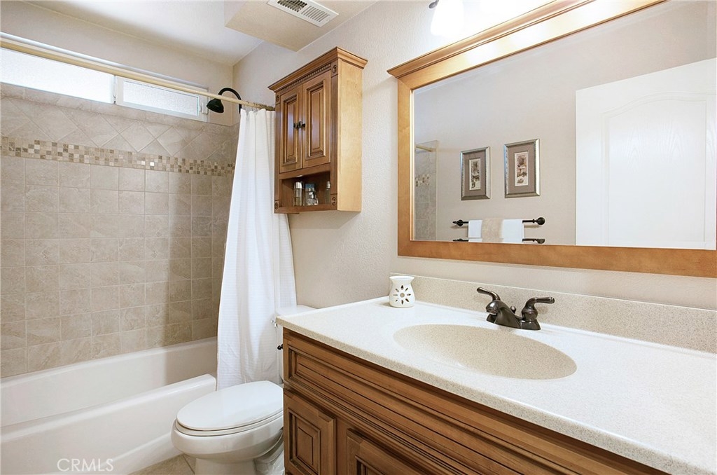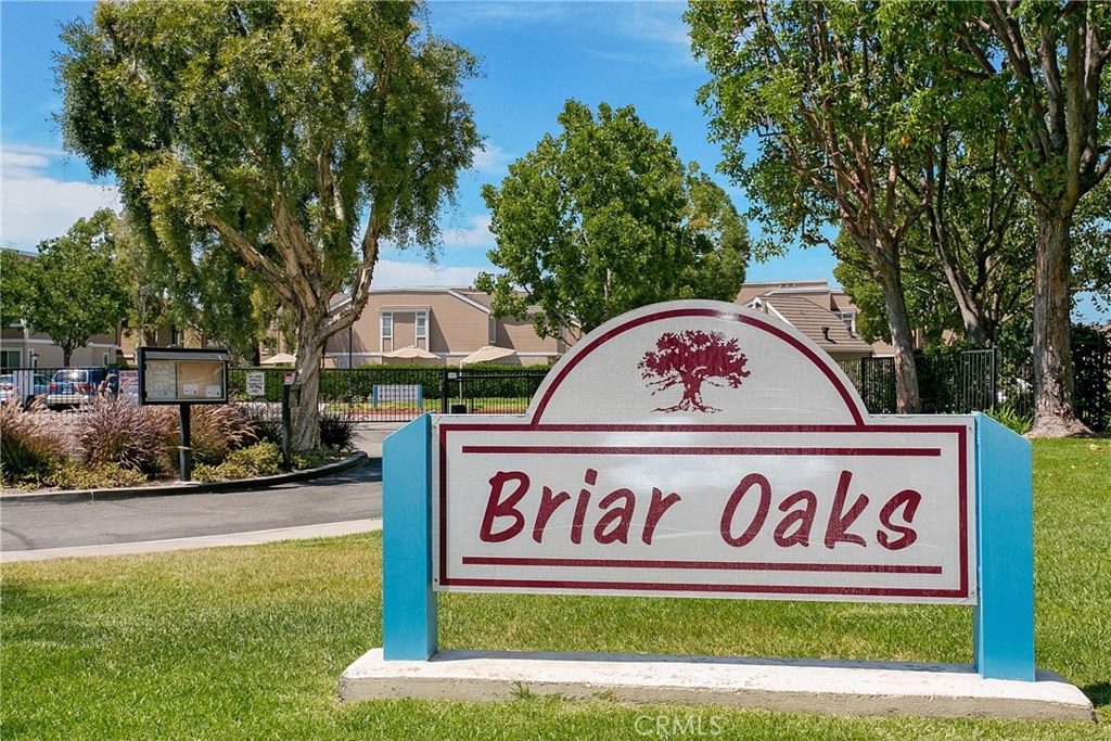 Welcome to the GUARD GATED community of Briar Oaks. This home sits perfectly within the community just steps to the community pool and spa and privately located with no one looking into your patio. As you enter into the front door you are greeted by the spacious living room that opens to the kitchen and dining area featuring glass sliding doors opening to the patio. Kitchen has newer granite counter tops, ample amount of storage & recessed lighting. Enjoy the breakfast bar off the kitchen as well as a formal dining area with it's own dry bar. Hall bathroom offers newer vanity, tile, mirrors and fixtures. Large master bedroom offers mirrored closet doors & its own ensuite bathroom. Master bathroom features a tub and shower, storage cabinets and newer vanity. Spacious secondary bedroom also features mirrored closet doors. Other features include; indoor laundry, direct garage access, A/C, laminate flooring, jetted tub, recessed lighting, newer interior doors and hardware, blinds, crown molding and baseboards. This community is a hidden gem that includes a swimming pool and spa and greenbelts throughout. Do not miss out on this amazing condo perfectly situated close to the 22, 405 and 91 freeways!