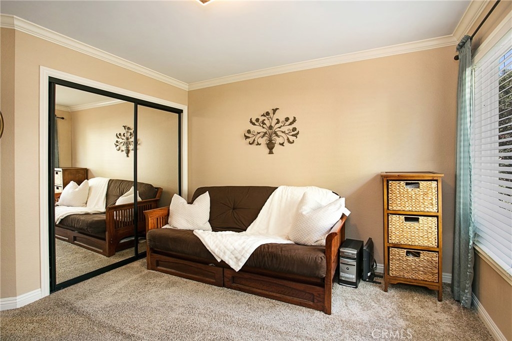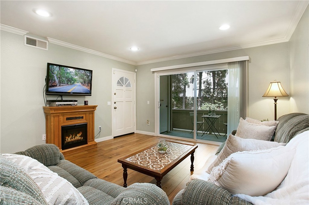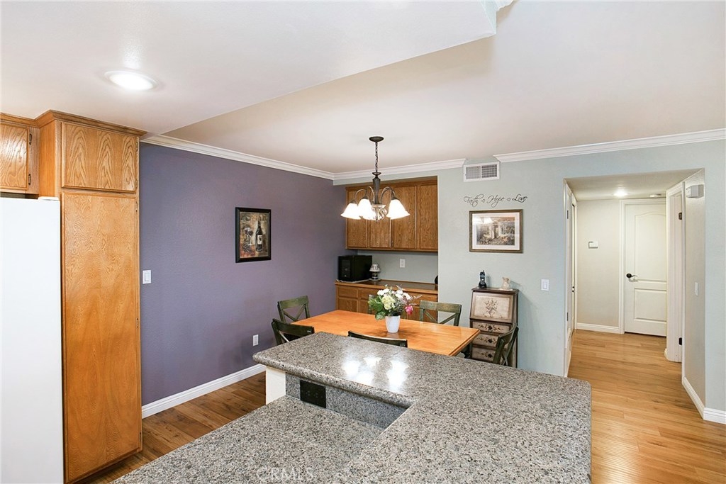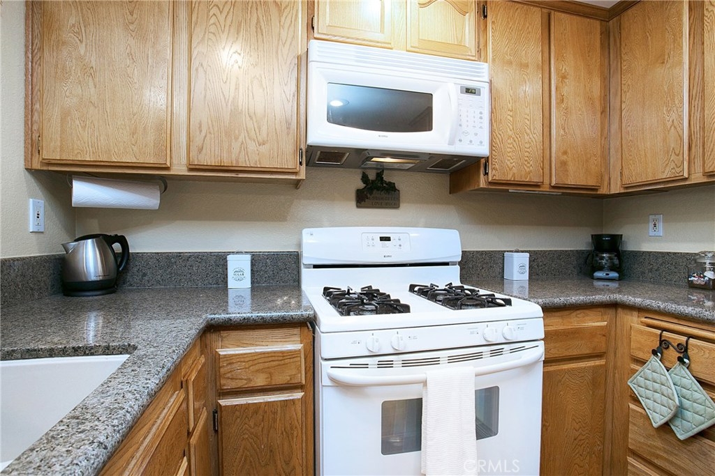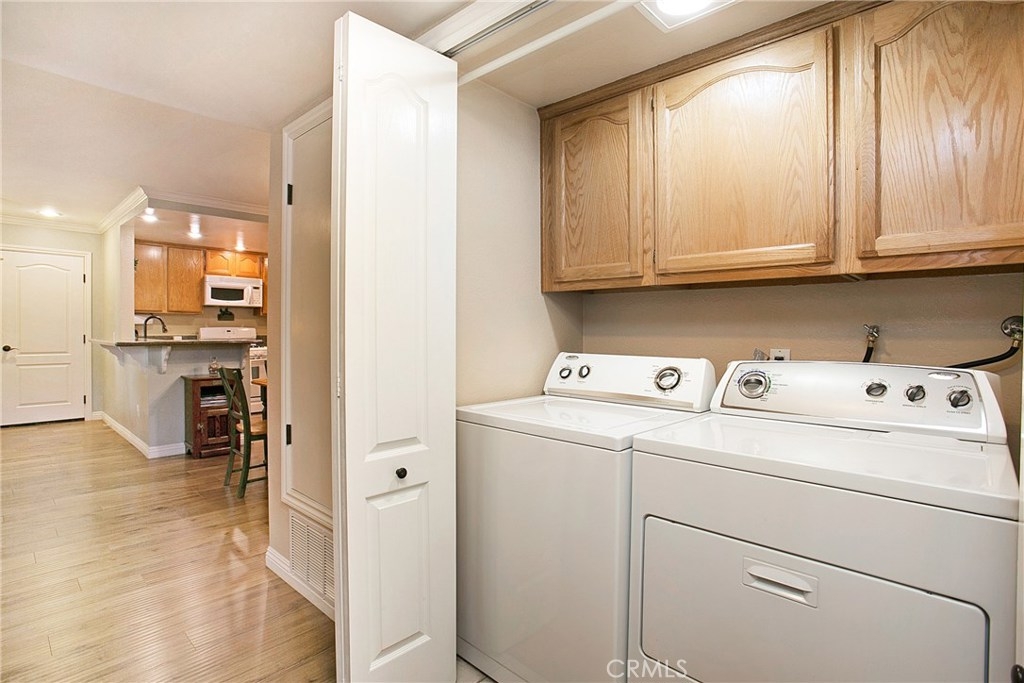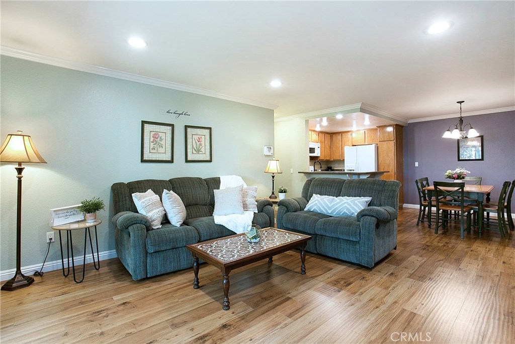 Welcome to the GUARD GATED community of Briar Oaks. This home sits perfectly within the community just steps to the community pool and spa and privately located with no one looking into your patio. As you enter into the front door you are greeted by the spacious living room that opens to the kitchen and dining area featuring glass sliding doors opening to the patio. Kitchen has newer granite counter tops, ample amount of storage & recessed lighting. Enjoy the breakfast bar off the kitchen as well as a formal dining area with it's own dry bar. Hall bathroom offers newer vanity, tile, mirrors and fixtures. Large master bedroom offers mirrored closet doors & its own ensuite bathroom. Master bathroom features a tub and shower, storage cabinets and newer vanity. Spacious secondary bedroom also features mirrored closet doors. Other features include; indoor laundry, direct garage access, A/C, laminate flooring, jetted tub, recessed lighting, newer interior doors and hardware, blinds, crown molding and baseboards. This community is a hidden gem that includes a swimming pool and spa and greenbelts throughout. Do not miss out on this amazing condo perfectly situated close to the 22, 405 and 91 freeways!