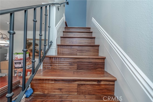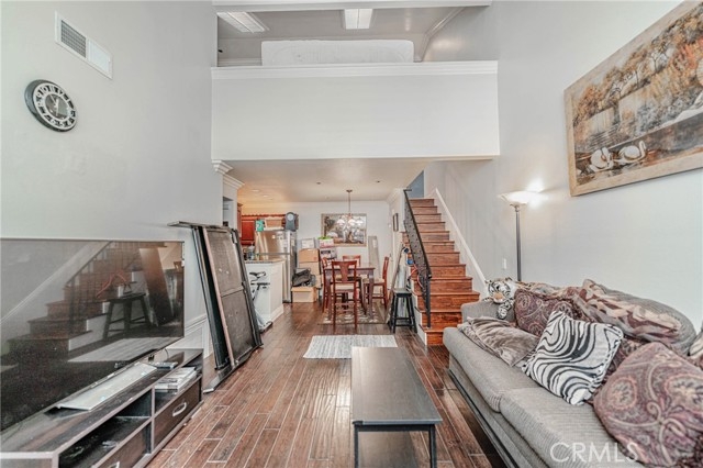 JOY OF OWNERSHIP! Wow this exquisite upper floor unit nestled in the serene guard gated community of Crosspointe Village Condo has a beautiful distressed hardwood flooring throughout and wrought iron railing to the loft, vaulted ceiling, recessed lighting and upgraded crown molding. Bay window with shutters as you walk in the spacious living room, dining area with large pantry under stairs. Upgraded kitchen cabinet with granite countertop with full tile backsplash and stainless steel appliances. Newer Kenmore fridge, newer stackable Maytag washer and dryer and newer water heater. The lower level bedroom has 2 closets and the loft bedroom has a sky lights, walk-in closet plus half bath, it can be expanded to include showers with permits from the city. Main floor has a full bath with a long vanity countertop and an oval tub with shower doors. Carport with storage is right across from the condo and the shady deck as you enter your home has a nice shade in the afternoon where you can enjoy the nice breeze while reading a book or just to sit and unwind. The community offers peace of mind with 24/7 attendants at the north gate, features 3 pools and spas, gazebo and large greenbelt in the middle of the complex, beautifully landscape walking paths, shade trees and ample guest parking. Nearby amenities include Rodeo 39 public market, Planet Fitness, Raising Canes, In-N-Out, Panda Express, coffee shops and much more. Centrally located to 22,405,605 freeways, Knotts Berry Farm and Disneyland. Sounds nice doesn't it? So hurry, call today!