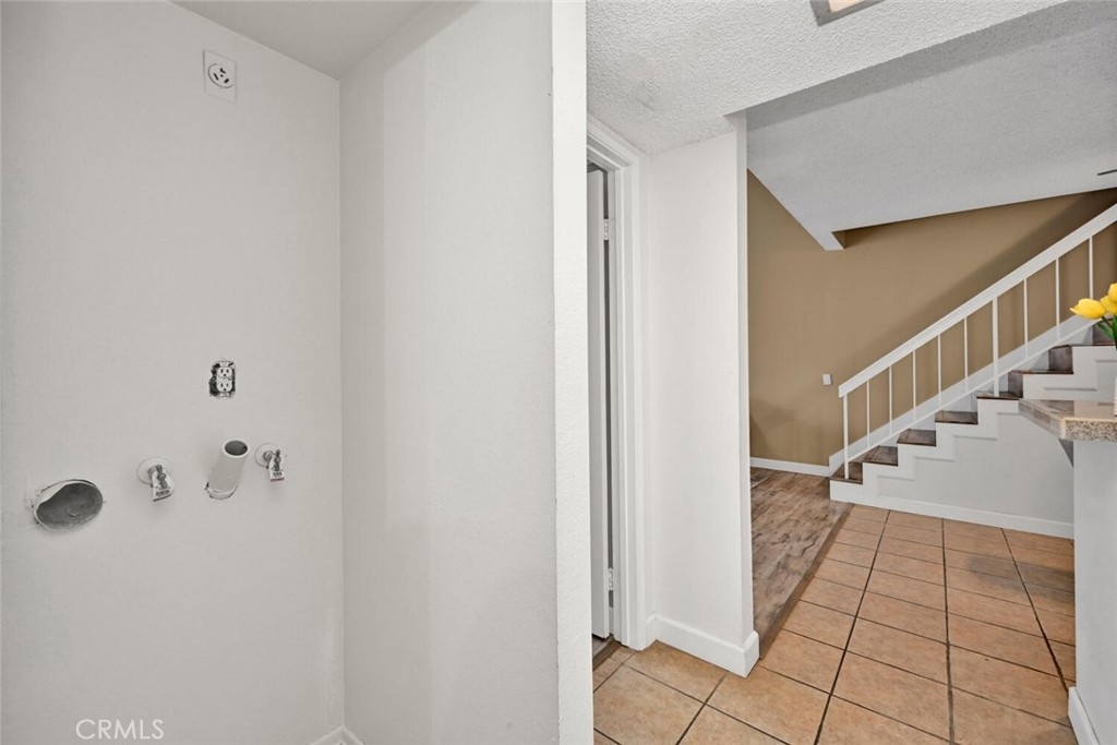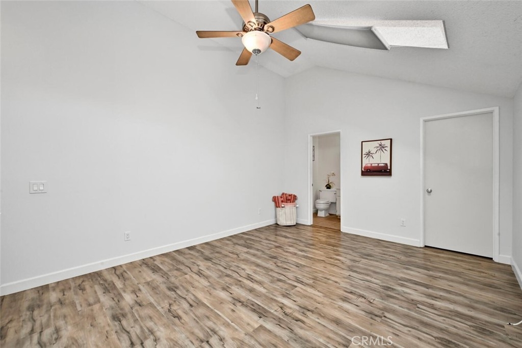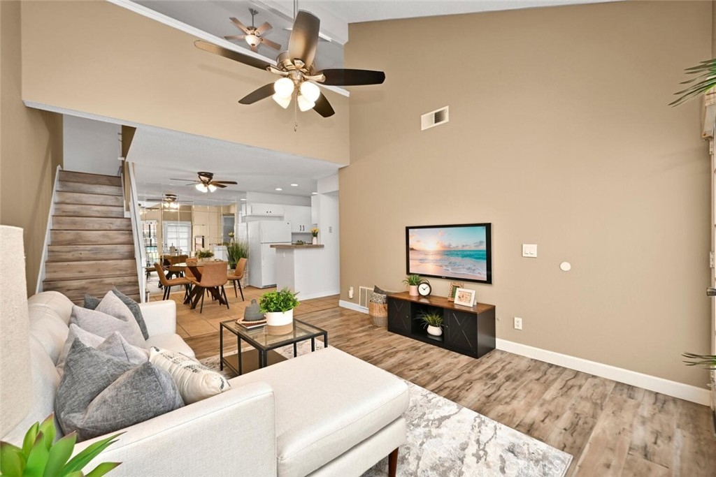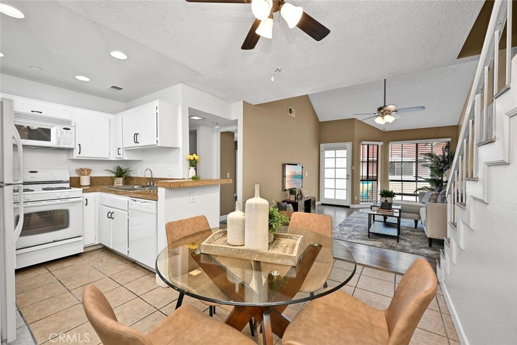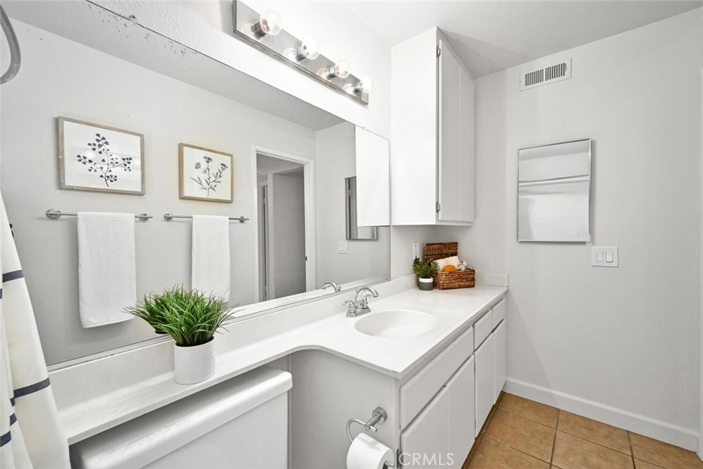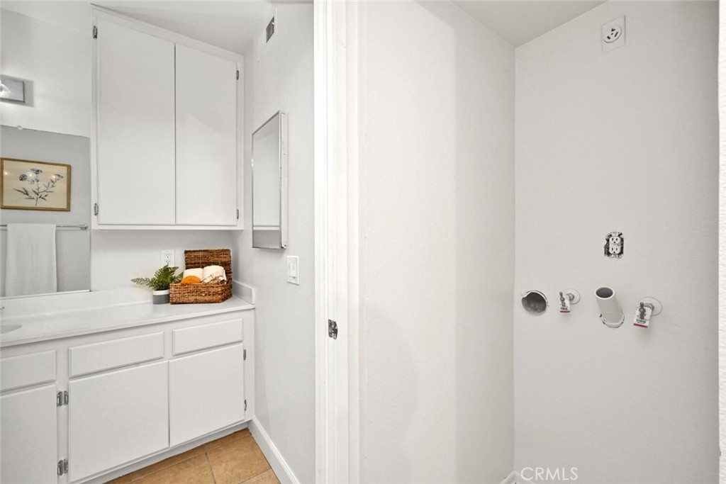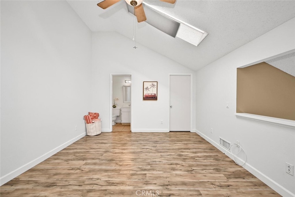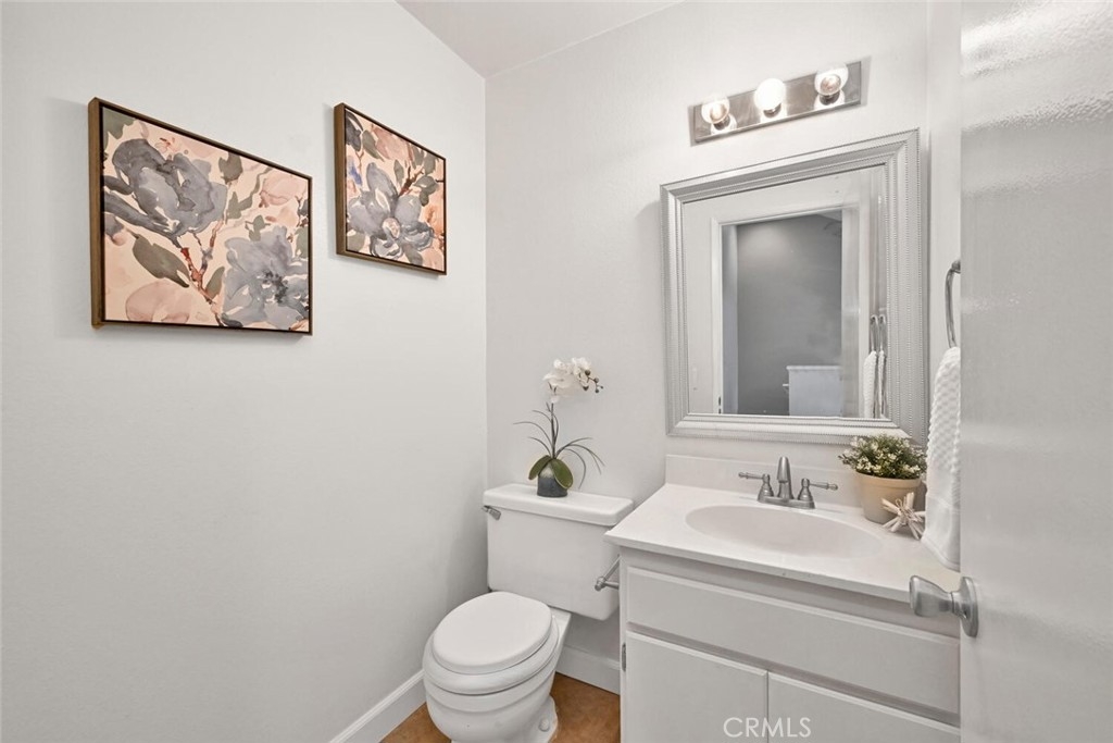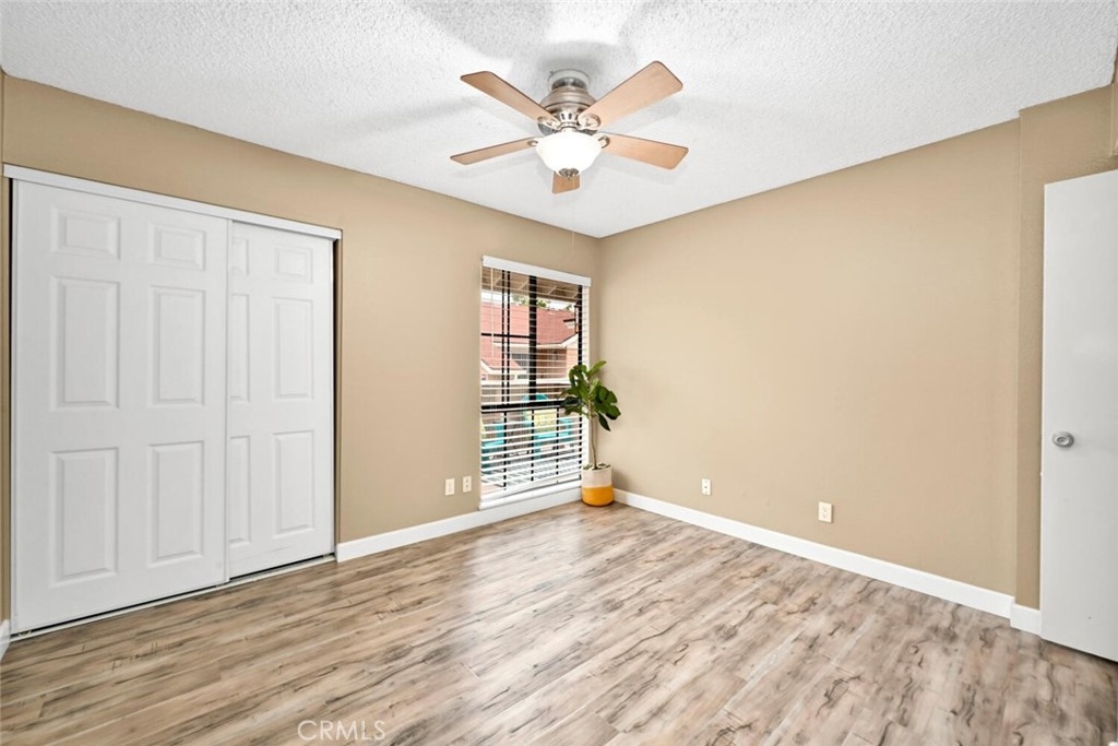 Welcome to this delightful condominium within the gated community of Crosspointe Village in Stanton. This nicely maintained, two-level home features an open floor plan with two bedrooms and one and a half bathrooms. The second bedroom is a large upstairs loft with a half bathroom and a large walk-in closet. As you enter, you'll be greeted by the inviting living space with vaulted ceilings, new paint, ceiling fans, and laminate flooring, creating a spacious and comfortable living area. This well-designed condominium offers plenty of storage space, making organization a breeze. The upstairs bedroom/loft is a versatile space with a private half bathroom, a walk-in closet, and skylights, allowing natural light to illuminate the room. The laminate flooring throughout adds a touch of warmth and durability. Crosspointe Village provides an array of amenities for residents to enjoy. Dip in one of the three pools or relax in one of the spas. The greenbelt areas provide a peaceful setting for leisurely walks. The community also offers 24-hour security at the gate, ensuring safety and peace of mind. Convenience is a highlight of this condominium, with the assigned covered carport No. 775 just a few feet from the unit. Additionally, the location is ideal, with easy access to freeways, shopping centers, and the new Rodeo 39 Public Market, offering various dining and entertainment options.