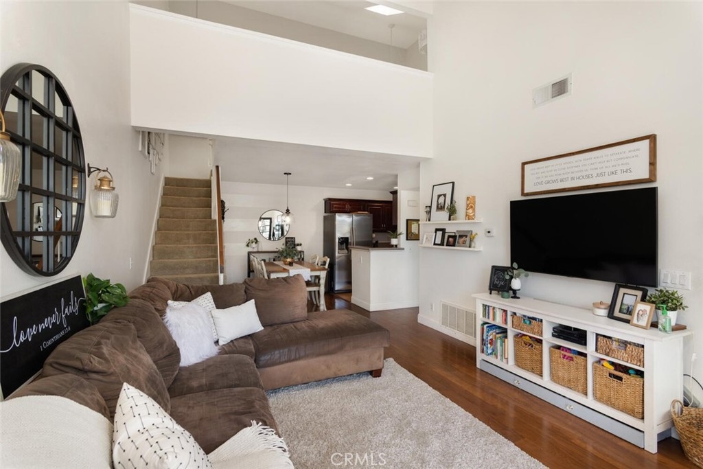 Welcome home to this stunning, highly sought-after upper floor loft model in the beautiful, gated community of Crosspointe Village. When you walk in, a bright, open and inviting living space greets you, full of natural light from the bay window in the living room. Wood laminate floors, scraped, vaulted ceilings with recessed lights. Updated kitchen features refaced cabinetry, electric range (gas line hookup behind stove), built-in microwave, double sink with disposal, and dishwasher. Spacious closet/pantry off of the dining area. Main floor bathroom contains large vanity and linen cabinets, newer toilet, soaking tub with shower. Main bedroom w/ two mirrored wardrobe closets. Newly purchased washer & dryer. The upstairs loft/bedroom features: 1/2 bath with new toilet, walk-in closet with organizers. Carport with additional storage is conveniently located directly across from bottom of the stairs. Crosspointe Village is a safe, family friendly community with 24/7 attendants at the North gate, 3 pools and spas, gorgeously landscaped walking paths, shade trees, large greenbelt & gazebo & lots of guest parking. 20 minutes from the ocean, a short drive from Disneyland and Knott’s Berry Farm, close to the 22 Freeway, In n Out, Raising Cane’s, Planet Fitness, & Rodeo 39 Public with trendy restaurants, bakery, coffee shop, florist, brewery & more. https://pphd.seehouseat.com/1789634?idx=1&pws=1