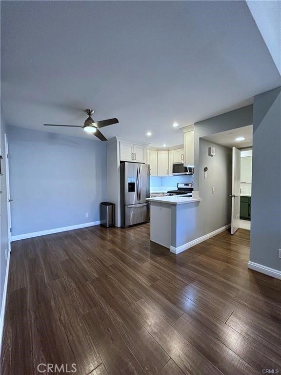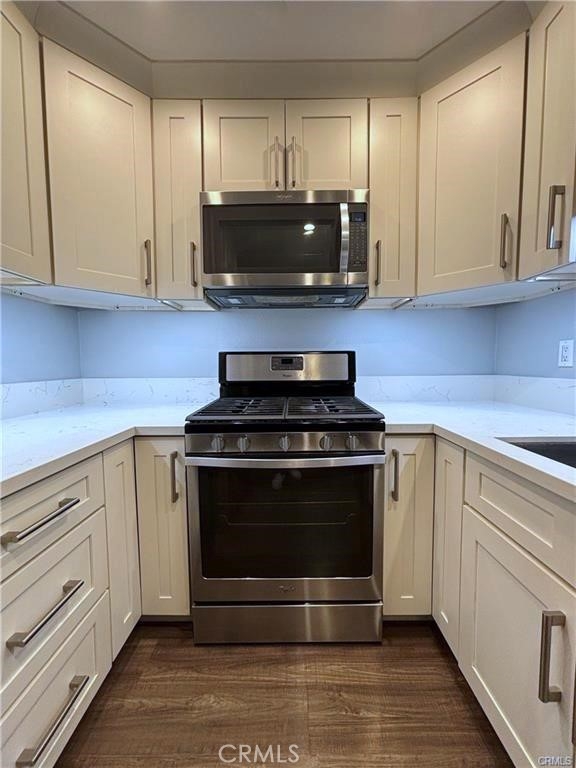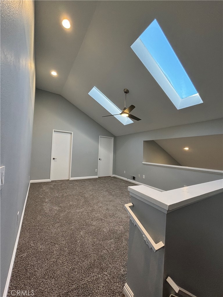 Welcome to this exquisite upper floor loft model nestled within the serene, gated community of Crosspointe Village. As you step inside, you'll be greeted by a luminous, airy living space illuminated by natural light streaming through the bay window in the living room and the skylights through the loft. Adorned with wood laminate floors freshly painted walls and vaulted ceilings, this home exudes contemporary elegance. The updated kitchen boasts newer cabinetry with soft close hinges and slides, gas range/oven, a built-in microwave, a double sink with disposal, and a dishwasher. A spacious closet/pantry off the dining area provides ample storage convenience and newer stackable LG washer/dryer off of the hallway. The main floor bathroom features a generous vanity, linen cabinets, new toilet, and a soaking tub with a shower. The main bedroom offers two mirrored wardrobe closets, new carpet, and large window for plenty of natural light. Ascend to the upstairs loft/bedroom to discover a half bath with a brand new vanity, new tile and a new toilet. It also includes a walk-in closet with organizers, and attic access for storage and an abundance of versatility. Conveniently located directly across from the bottom of the stairs is a carport with additional storage. Crosspointe Village ensures peace of mind with 24/7 attendants at the North gate and offers a plethora of amenities, including three pools and spas, beautifully landscaped walking paths, shade trees, a large greenbelt, a gazebo, and ample guest parking. Situated just 20 minutes from the ocean and a short drive from Disneyland and Knott’s Berry Farm, and with easy access to the 22 Freeway, this home offers proximity to a plethora of attractions and conveniences. Nearby amenities include In-N-Out, Raising Cane’s, Planet Fitness, and Rodeo 39 Public, boasting trendy restaurants, a bakery, a coffee shop, a florist, a brewery, and much more. This condo is truly turnkey. Must see to appreciate.