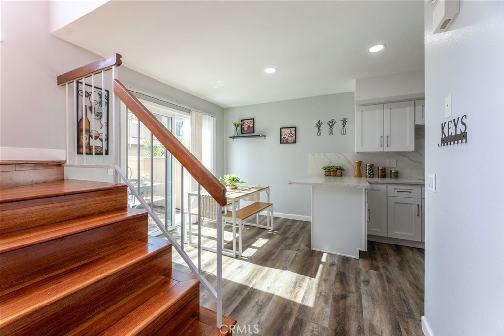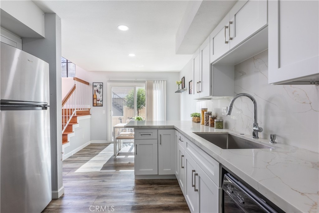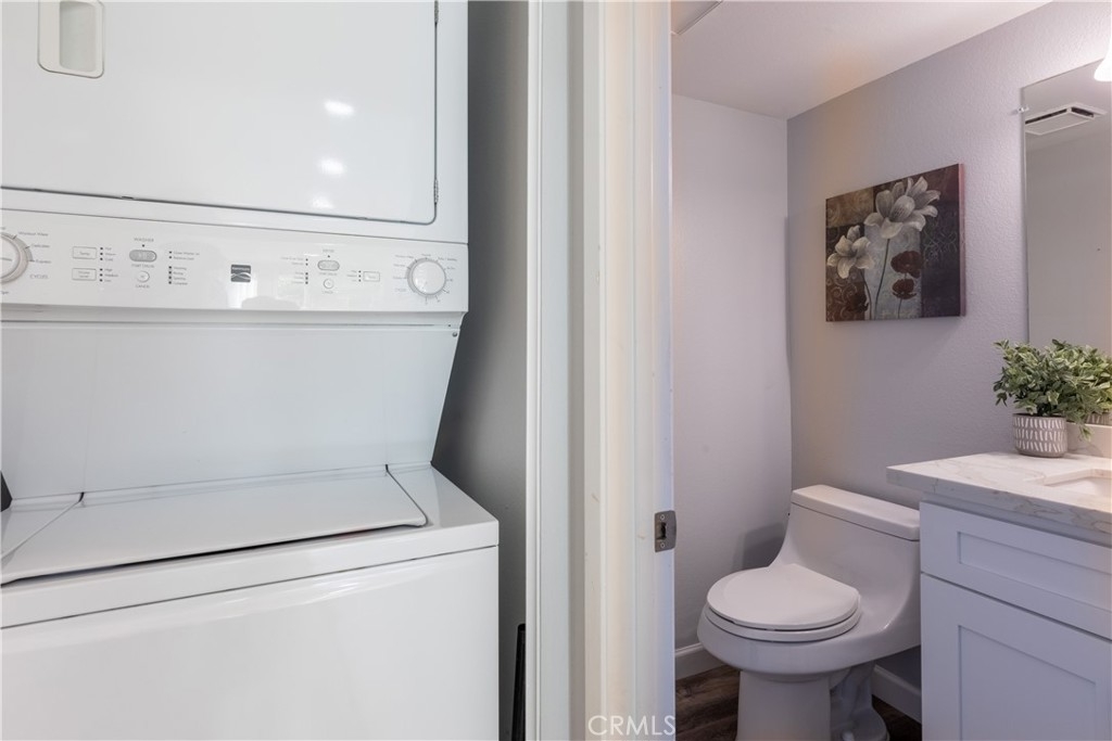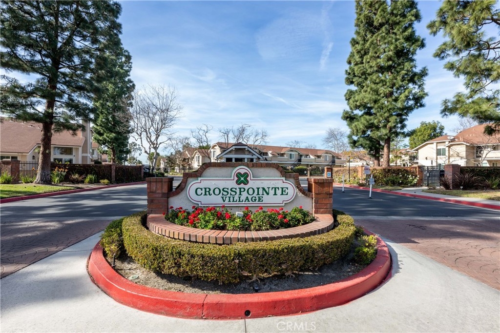 WELCOME to your new home in Crosspoint Village! This charming two-story, end-unit condo features 2 bedrooms, 2.5 baths, and 1,014 sq. ft. of inviting living space. Step into the bright and airy living room, which flows seamlessly into the updated kitchen. The kitchen is equipped with quartz countertops, newer cabinetry, a breakfast bar, and direct patio access - ideal for relaxing or entertaining. With all appliances included (stove, refrigerator, dishwasher, washer, and dryer), moving in is a breeze! Upstairs, you'll find two spacious primary bedrooms, each with its own en-suite bathroom featuring updated showers and sliding glass doors. A guest-friendly half bath is conveniently located downstairs. Additional features include indoor laundry, recessed lighting, central air and heat for year-round comfort, a covered carport AND ample guest parking. Located in a gated, FHA-approved community with 24-hour security, three pools, spas, and a pet-friendly environment, this home offers security, charm and practicality. Plus, it's just minutes away from shopping, restaurants, and freeways (22 and 405). Don’t miss out on this incredible opportunity - Submit ALL Offers!