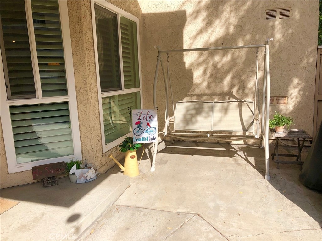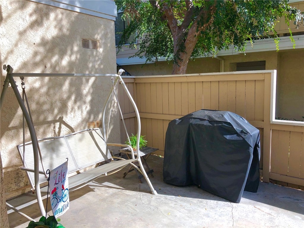 Quaint Stanton Condo! 1 bedroom, 1 bath. This quaint, single level, condominium is located on the ground level. It opens up to a nice sized patio, perfect for potted plants, a barbecue, and relaxing outside! Inside, a living room leads to a dining area and kitchen. The bedroom has two convenient closets and a large window that brings in natural light. New windows and Plantation shutters throughout. Includes a carport with storage. This home is situated among green belts lined with mature trees and landscaping. Three community pools and 3 spas. 24 hour security. Conveniently located near freeways, restaurants, and shopping!