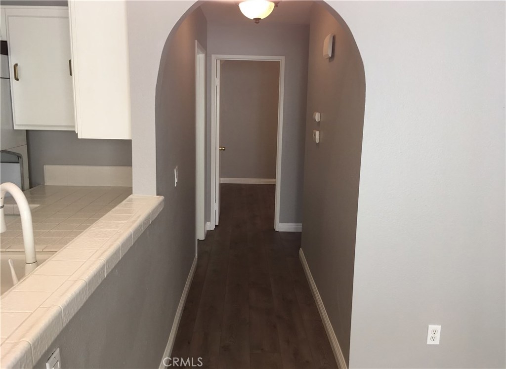 Cross Point Village a well maintained private community with Security gates attended by Security Guard at entrance, great amenities 3 pools, Spa, near 22 Freeway. Upstairs unit 2 Bedroom condo with one full bathroom and vanity wash area in master bedroom. MB has walk in closet, New Paint, New Flooring. Covered carport near by unit, inside laundry, pets permitted. Unit has recessed lighting and vaulted ceilings. Plenty of guest parking. New shopping center under construction that will provide area convenience.
