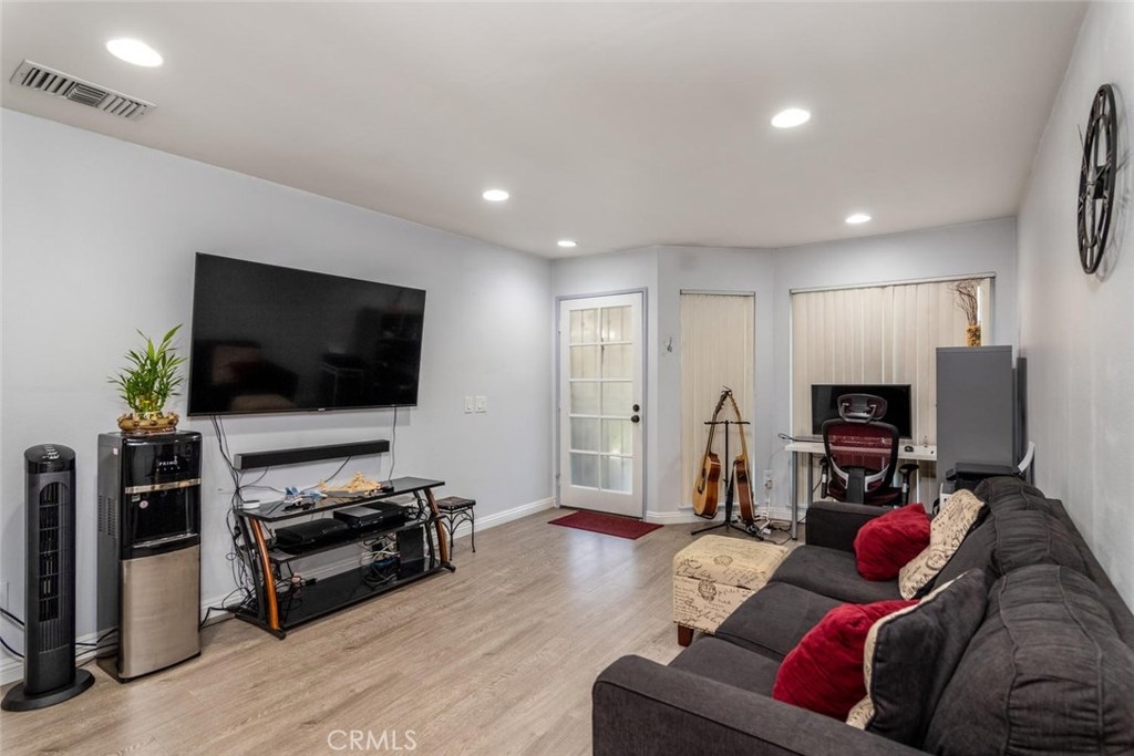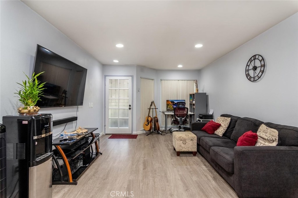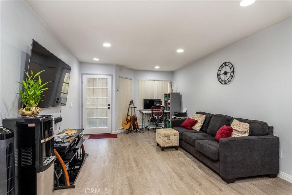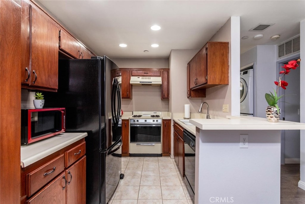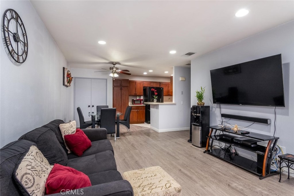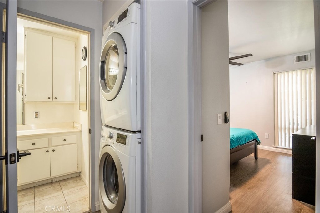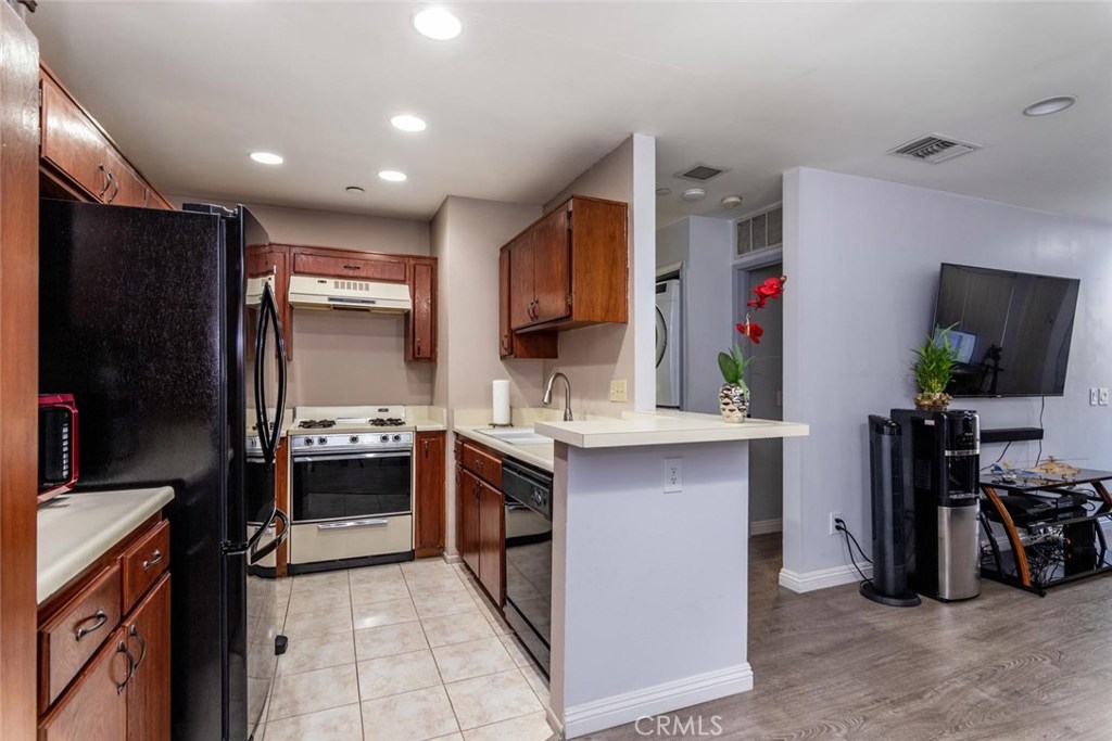 Walk through tour: https://pphd.seehouseat.com/public/vtour/display/1603832?idx=1#!/video Popular Crosspointe Village Condo! Lower level single story condo right behind the new Rodeo 39 Center at Beach and Garden Grove Blvds. This one bedroom, one bath condo feels like home from the moment you drive through the gated entrance into the complex. From the parking walk up the sidewalk to your own gated patio. Beautiful planter beds and plenty of room for outdoor dining and a small BBQ. The property has energy efficient DOUBLE PANE windows, CENTRAL AIR and beautiful wood-style floors in the main living spaces. Half bay window in the living room lets in the breeze and natural light. Open concept kitchen and dining area. Ample storage with double door closet at the end of the dining area and a pantry in the kitchen. Easy clean counter, wood cabinets with knobs and pulls, dishwasher, gas range/oven, recirculating fan, double sink with disposal. The spacious bathroom features a long vanity counter, Roman style oval soaking tub with glass shower doors, linen storage and tile flooring. The bedroom has two wardrobe closets with trendy curtains for doors. The complex features 3 pool and spa areas with bathrooms and outdoor showers. Entrances are gated with an attendant at the North entrance 24 hours a day. Directly in front of the complex is a new shopping and dining center. Rodeo 39 is still under construction but many shops have opened. Carport #846 with storage