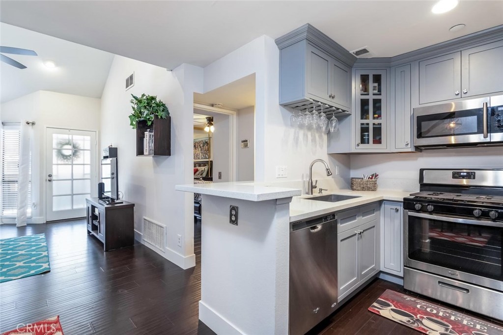 Popular 2nd floor Crosspointe Village Condo. 2 Bedroom 1.5 Bath (2nd bedroom is large open loft) This home is beautiful. Modern Shaker cabinets in with quartz counters, space saving corner doors open to a double “lazy Susan”, Wine, storage, deep stainless sink, built-in microwave, gas range/oven combo, refrigerator and stainless dishwasher. Recessed lighting and ceiling fan in the living room. Both bedrooms have a ceiling fans with lighting. The bathroom is remodeled with designer finished Shaker cabinet, quartz counters, lots of storage and a large oval tub. The loft/bedroom features a walk-in closet, remodeled half bath and two skylights. Most of the flooring appears to be engineered hardwood. The complex has 3 pools, 3 spas, gated entrances, 24-hour gate attendants. All this located next to the new and upcoming center next door. Rumors are, that In&Out, Raising Canes, Nagels, Planet fitness, Poke Bowl, Chase Bank have all signed on to move in!