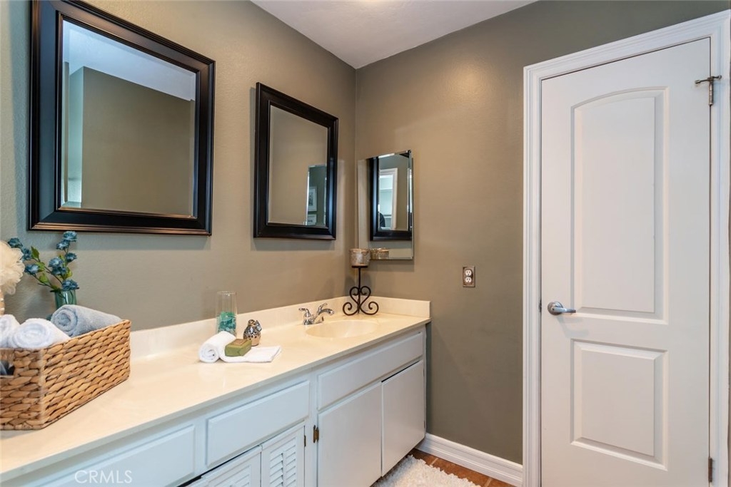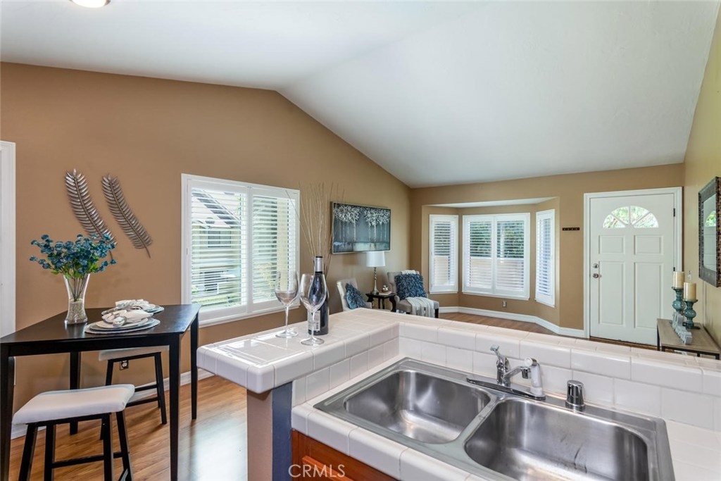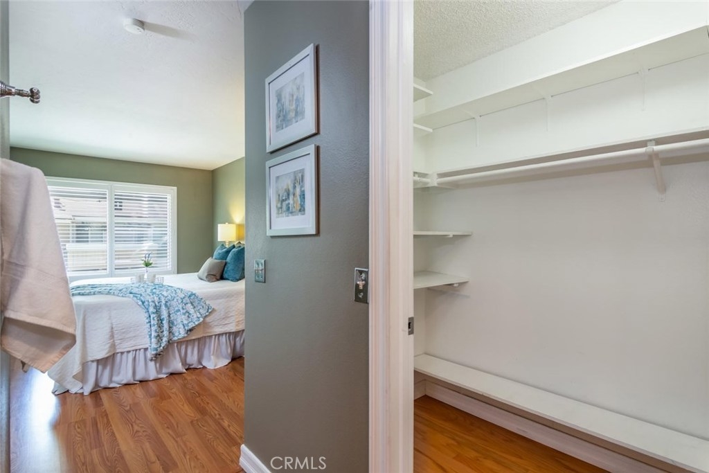 Green Belt View at Crosspointe Village! 2 Bedroom, 1.25 Bath, 822 Square Feet Popular Upstairs End Unit with double pane windows, Plantation shutters, wood-laminate flooring in living room and vaulted ceilings. Kitchen features newer cabinet doors and fronts, pull out shelves in pantry, ceramic tile counters, built-in microwave, easy clean electric range/oven, dishwasher, stainless sink and refrigerator. Enjoy the raised panel doors, re-textured ceilings and designer color palette. Bathroom has access from the hall and through the master bedroom. The tub had been upgraded to a large stand up shower. Owners suite features: Walk-in closet, double door entry, dressing area with long vanity counter and extra storage below. There is a stackable washer and dryer behind the bathroom door. Both Water Heater, Central Air and Heater have been recently replaced. Crosspointe Village has 3 pools and spas, lots of green belts and sidewalks, mature shade trees. The complex is gated and has 24-hour gate attendants. The new shopping center is opening soon with Planet Fitness, In-N-Out Burger, Raising Canes, Chase Bank, AT&T, Food Court and more. Nearby carport number 607 with storage lockers above.