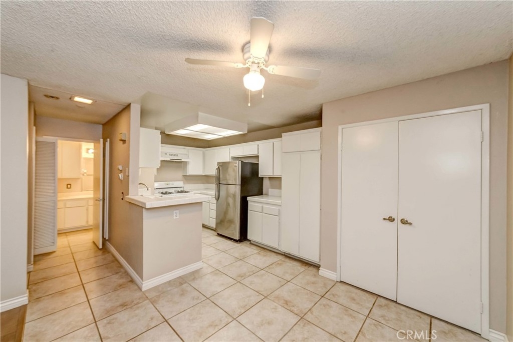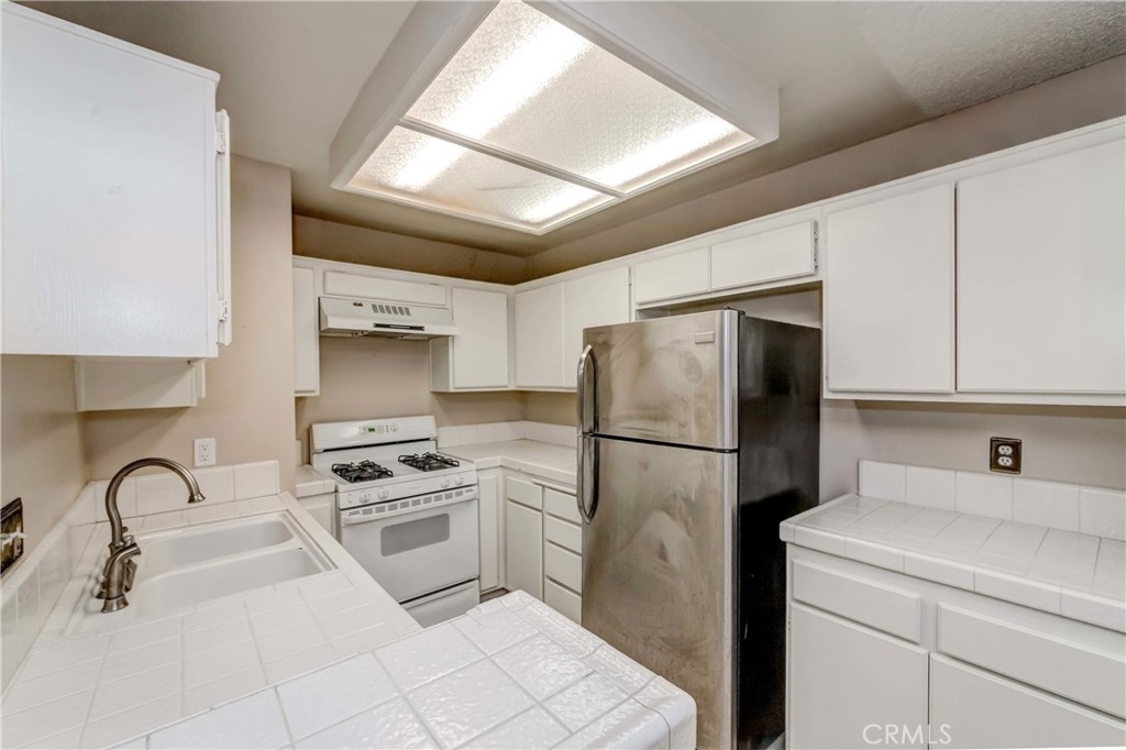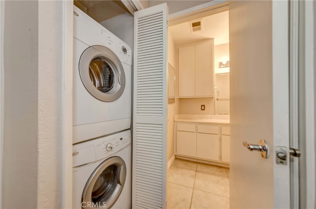 Spacious 1 Bedroom, 1 Bath Condo in beautiful Crosspointe Village. Large Patio in the front. Open floor plan. Laminate wood flooring in living room, Bedroom, tile flooring in kitchen, bathroom and dining room. Bedroom with mirror new closet doors. Bathroom has large oval tub and plenty of storage. Laundry closet inside. Included washer and dryer and refrigerator. 24 hour gated community features 3 pools and 3 spas and open grassy areas. Centrally located and close to 405, 22, and 605 freeways.