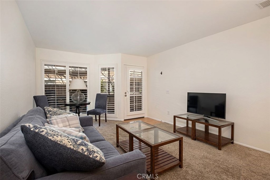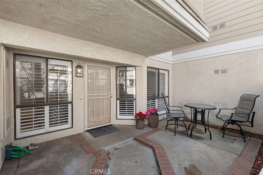 Wonderful opportunity to own this single story home in the popular Crosspointe Village Community. If you’re a first time buyer, someone looking to retire or an investor, look no further. This property is meant for you and offers many amenities. Starting with security and comfort, there is a 24 hour guarded gate leading into the community. You’ll instantly fall in love with the professionally landscaped grounds and walkways outlining the many greenbelts. With Summer around the corner, enjoy one of the three pools and spas. Your lower unit has a brick lined patio, perfect for you to relax and enjoy the view of the Greenbelt. Your new home welcomes you with a light and airy open floor plan with textured ceilings, shutters, bay window, wall to wall carpet in living, dining and bedrooms, A/C, and indoor laundry. Kitchen opens to dining and living rooms and includes tiled counters, breakfast bar, wood cabinets, dishwasher and pantry. The spacious bedroom has lots of light and two mirrored wardrobe closets. Bathroom was tastefully remodeled with a double vanity, toilet, shower, tiled flooring, towel racks, and a custom mirror. There is an assigned carport with storage. Crosspointe is a pet friendly community, close to fwy, and conveniently located across the street from the Village Center, presently in the renovation stage of a new construction introducing new eateries and other businesses.
