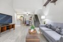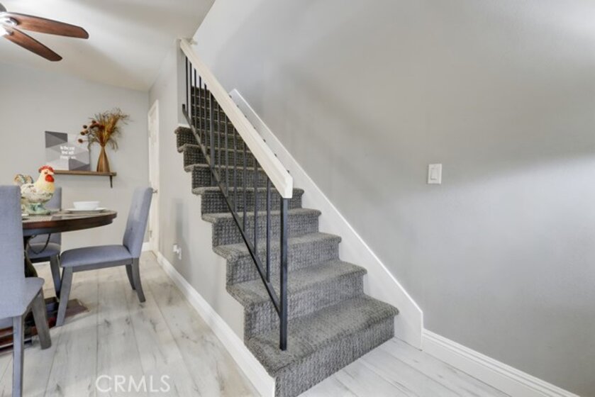 Welcome to the Community of Crosspointe Village. A charming mix of condos and Townhomes nestled in a guard-gated, well-maintained contemporary tract of homes. The units feature green belts with shaded Gazebo's for neighbors to gather and children and pets to enjoy. There are 2 pool areas in the community, as well as plenty of open parking for family and friends to visit. This unit has been remodeled in the last 3 months and now features on-trend vinyl flooring, new white kitchen cabinetry, white countertops, and stainless steel appliances. Bathrooms have upgraded features as well. Enter the top-level unit with a balcony to sit and enjoy the squirrels playing in the tree-tops or BBQ for friends. The light and open living room has a small bay window and is adjacent to the dining area off the kitchen. There is a primary bedroom downstairs and full bathroom. Upstairs is a large bedroom loft with a small walk-in closet and a half bath, and features 2 skylights. Forced Air Heating and Air Conditioning as well as high vaulted Ceilings, make the unit seem spacious. Convenient inside laundry with a stackable washer and dryer will remain with the unit. The unit comes with a designated covered parking spot and storage cabinet, and there is open parking for a second vehicle. The community is within walking distance to Rodeo 39 Public Market, full of eateries, music, and shopping.
