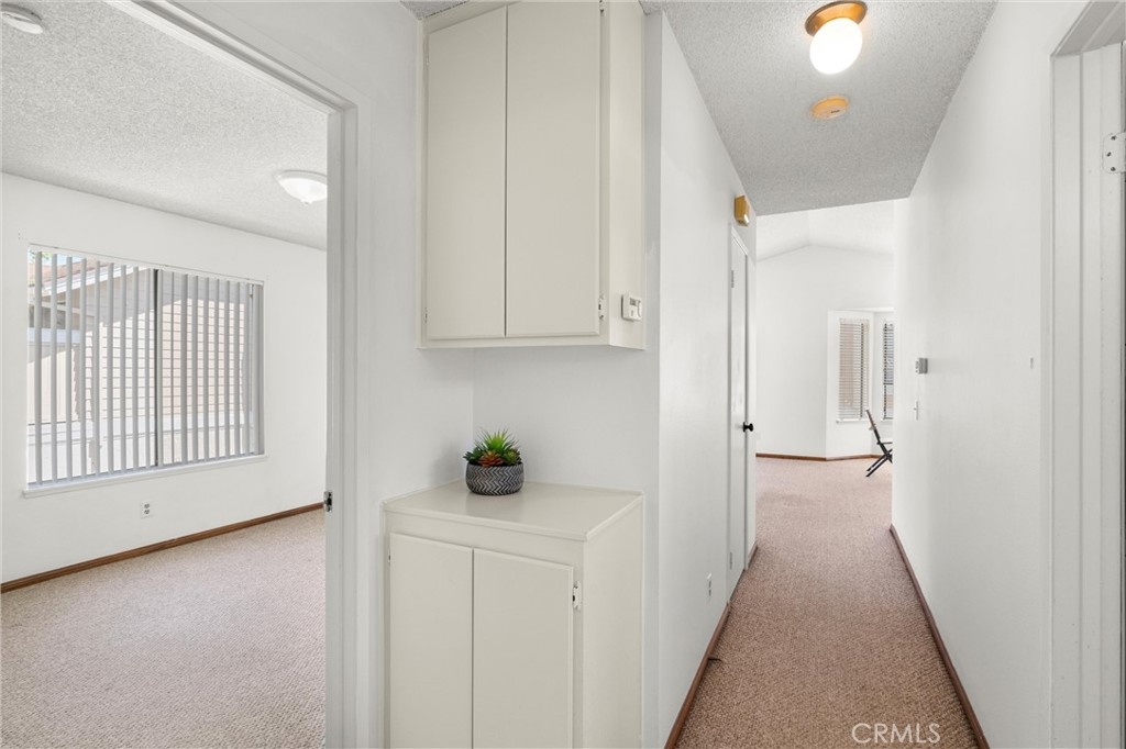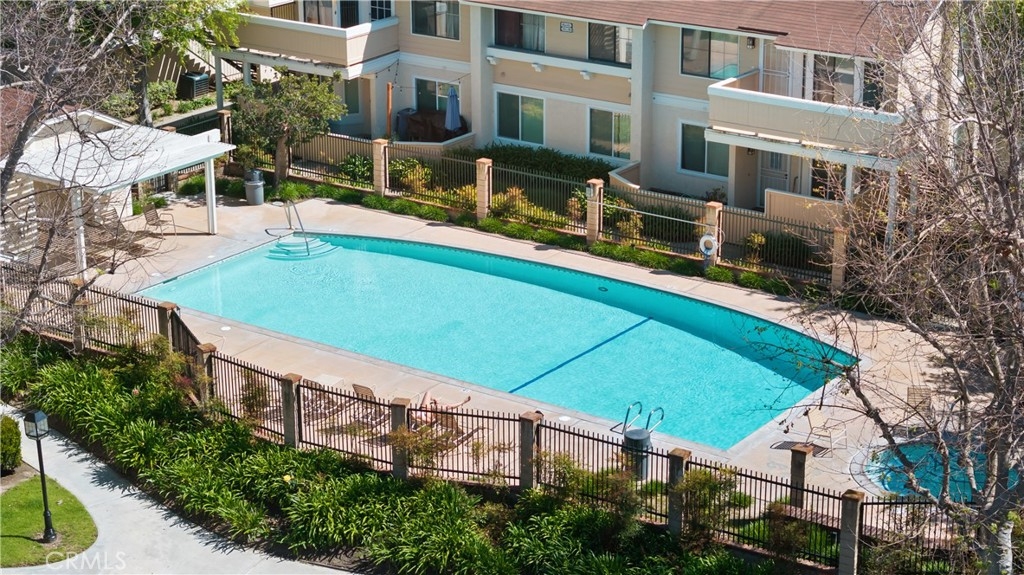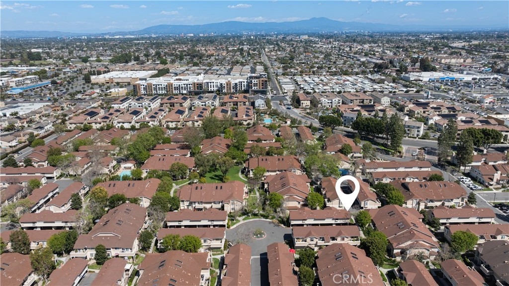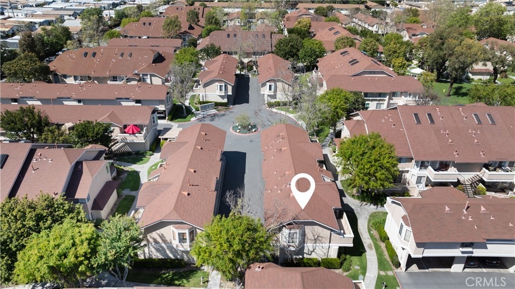 Popular Penthouse plan located above the carports. Only one common wall. No one above you and carport below! This 2 bedroom, 2 full bath end unit also has 2 Carports! Features include: Bay window in dining area, CENTRAL AIR, green house window in the kitchen, vaulted ceilings in living room stackable laundry area behind the door in the hall bath, two balconies, kitchen pantry and lots of storage. Second bedroom has double door entry to living room and could be a den. Great location in the center of the complex with easy access to the North pool and spa area. Complex has 3 pools, 3 spas, gated entrances, North entrance has attendants full time. Near the new Rodeo 39 Shopping center, 25 minutes to the beach, near Knott's, Disneyland and all that Orange County has to offer.