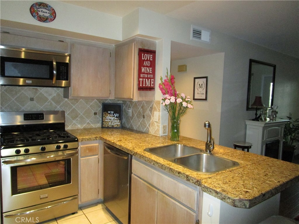 Welcome home!! Completely remodeled and upgraded Crosspointe Village gated community. Two bedroom, one spacious bathroom, downstairs corner unit. This property features open kitchen with granite counter top's and stainless steel appliances, recessed lighting, Central air conditioning & heating, ceiling fans, upgraded dual pane vinyl windows with plantation shutters. In addition featuring inside laundry, engineered wood floors throughout, and freshly painted interior. Last but not least a gated private quiet cozy front welcoming brick patio. This community features many amenities three pools, 3 jacuzzis, 24 hour security, lots of guest parking, and beautifully landscaped tree lined greenbelt areas for a park like setting. Conveniently located near shopping center's, restaurants, and the 22 freeway. Best of all award winning Garden Grove unified School district.