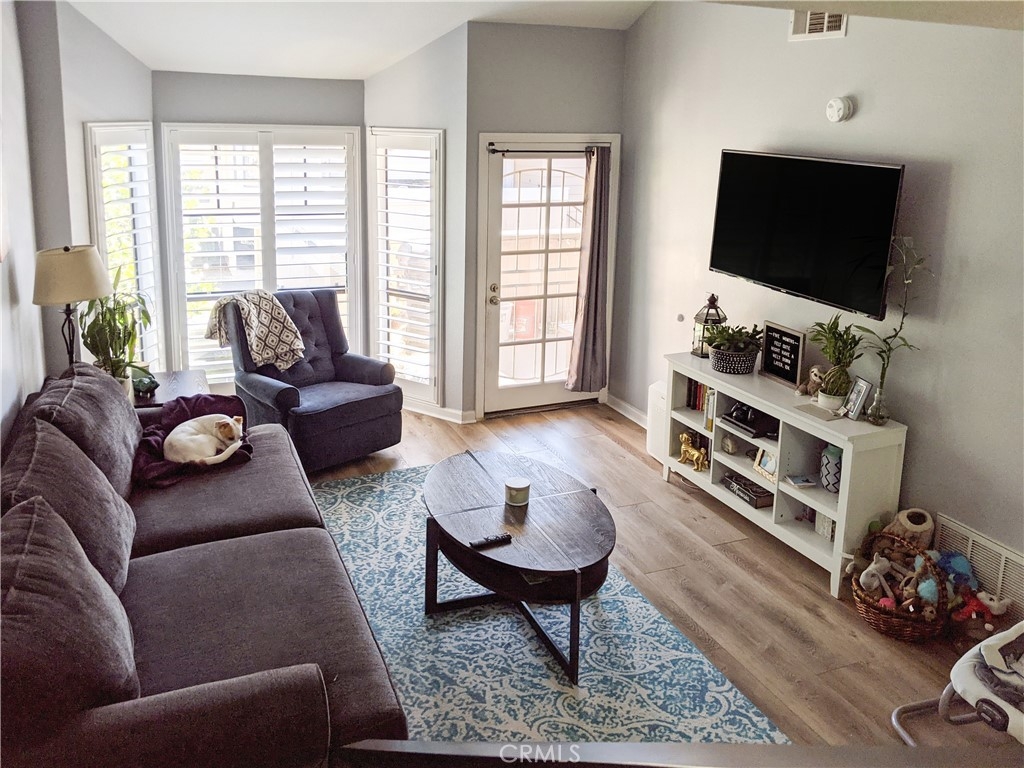 Stunning two-story condo in the coveted Crosspointe Village Community! This beautifully renovated loft-style unit boasts an Open-concept living area, recessed lighting, plantation shutters, and sleek LVP flooring. The two story ceilings and wall of windows makes it feel bright, airy and much larger than 1000 sqft! The kitchen features quartz countertops, updated hardware, glass tile backsplash and stainless steel dishwasher, microwave, and range. Additionally, the main level has a spacious bedroom, renovated full bathroom with quartz countertops, and a convenient new stackable washer/dryer. The stairway with custom railing leads to a spectacular loft-turned-master-bedroom with vaulted ceilings, upgraded half bath, large walk-in closet and plenty of natural light beaming from the recently replaced double pane skylights. Outside you’ll enjoy a Private patio and covered carport with dedicated parking space just a few steps from the home. This 24 hour Guard-gated community also features 3 sparkling pools and spas, Lush community greenbelt with pergola, and Plenty of guest parking. Located within a 2-minute walk to Rodeo 39 Public Market, restaurants and convenient freeway access. Crosspointe Village is FHA approved! This Gorgeous Condo Won't Last Long!