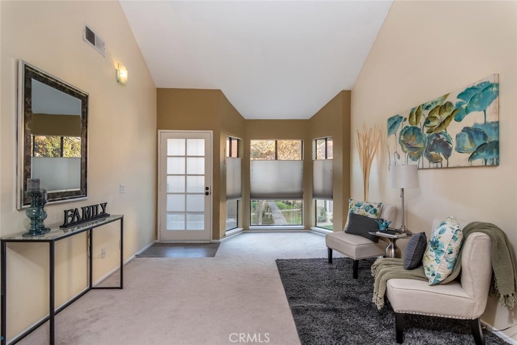 This upper floor condo is beautifully upgraded with modern updates. Second bedroom is large loft with walk-in closet and half bath with two skylights providing lots of natural light. Designer paint colors, ceramic tile flooring on entry, kitchen and baths and neutral plush carpeting. Kitchen features: Quartz counters, painted cabinets with brushed nickel pulls, subway tile back-splash, stainless appliances including gas range/oven, built-in microwave, stainless dishwasher and refrigerator. Dining area next to kitchen with tear-drop lighting and pantry closet. Living room with bay window and vaulted ceilings. Upstairs loft has two skylights (new skylights installed November 2019). Nearby Carport number 569 with storage lockers. Crosspointe Village features 3 Pool, 3 Spas, lush landscaping, multiple green belts, 24 Hour gate attendants and cameras at the front gates. All this right behind the new shopping center at Beach and Garden Grove Blvds. The new center features: In-N-Out, Raising Canes, Chase Bank, Planet fitness, with more shops opening soon.