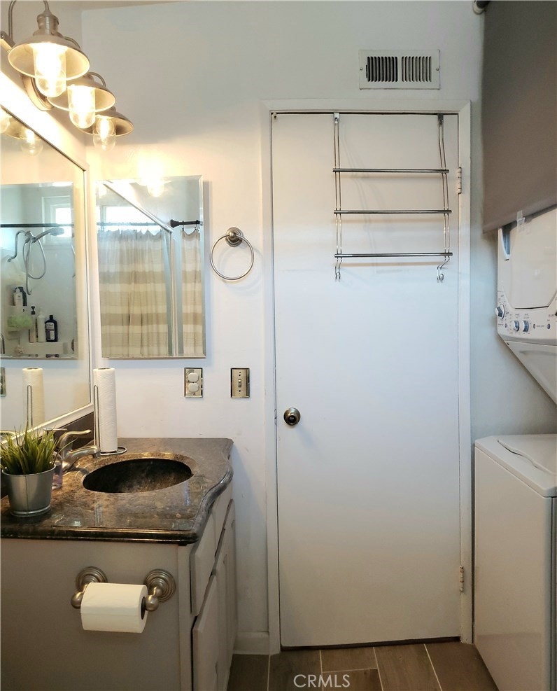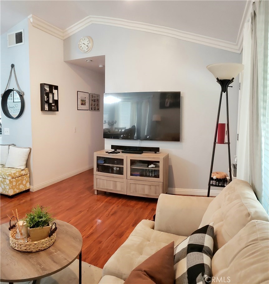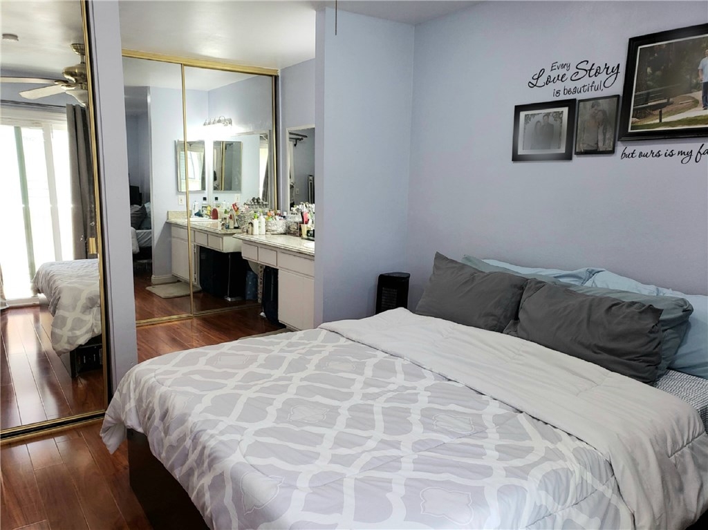 Beautiful and affordable 2 bed, 2 bath end unit in the OC. Conveniently located with easy access to the freeway and close to Costco, H Mart, Walmart, Bella Terra Mall and Whole Foods. Also, new Local Food hubs such as Beach and 22, and Rodeo 39 are soon to open. You will never run out of food or food supplies, especially during these extraordinary times. Safe and pet-friendly community with lots of trees, greenbelts and walking paths. Gated community with security guard available 24/7. Community access to 3 pools and spas. Recent upgrades include porcelain wood-pattern tile in the kitchen and both bathrooms, subway tile kitchen backsplash, water efficient toilets in both bathrooms, water heater, and reglazed tub in the second bathroom. Other home features are: Dual pane windows and slider, granite counters in kitchen and both bathrooms, wood laminate flooring in living room, dining area, hallway and bedrooms. Tall base molding, Crown molding in main areas, ceiling fans in bedrooms, recessed lighting, closet organizers in the second bedroom, stackable washer and dryer in the second bathroom. Master bedroom has private deck with storage, vaulted ceilings, large oval tub bath, dressing area and two mirrored wardrobes, one with organizers and dual pane slider. Kitchen includes stainless steel sink, green house window, gas range/oven, built-in microwave, refrigerator and recessed lights.