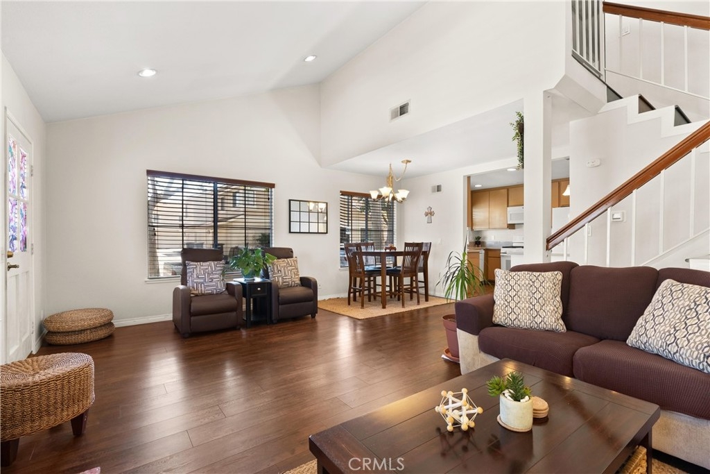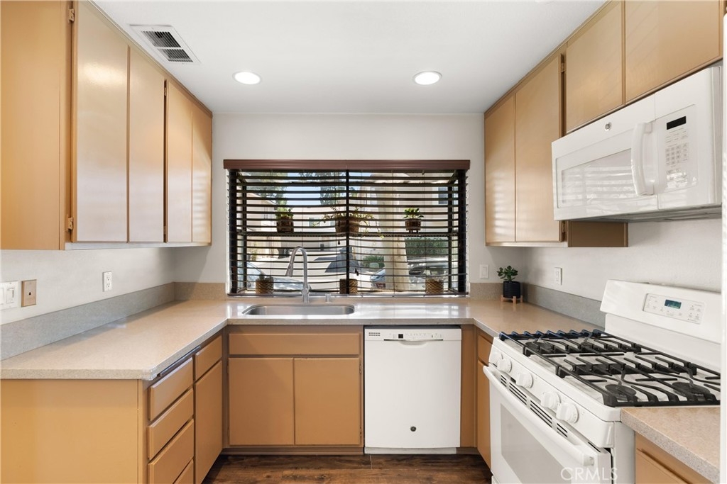 Largest plan at Crosspointe Village! This end unit townhome style features vaulted ceilings in living/dining and primary bedroom, CENTRAL A, recessed lighting, greenhouse window in kitchen. Attached two car garage with opener. This home is ready for a new owner, move right in or add some of your own personality and decorate with your own flavor. Large primary bedroom upstairs has a large shower, vaulted ceilings, ceiling fan and triple wide wardrobe closet. Two guest bedrooms with mirrored closet doors are directly across from the hallway bath and linen storage. The complex has lots of trees and sidewalks to get your steps in. Three pool and spa area all inside a gated entrance. Across the street is Rodeo 39 shopping with a food court and other shops and an arcade too!