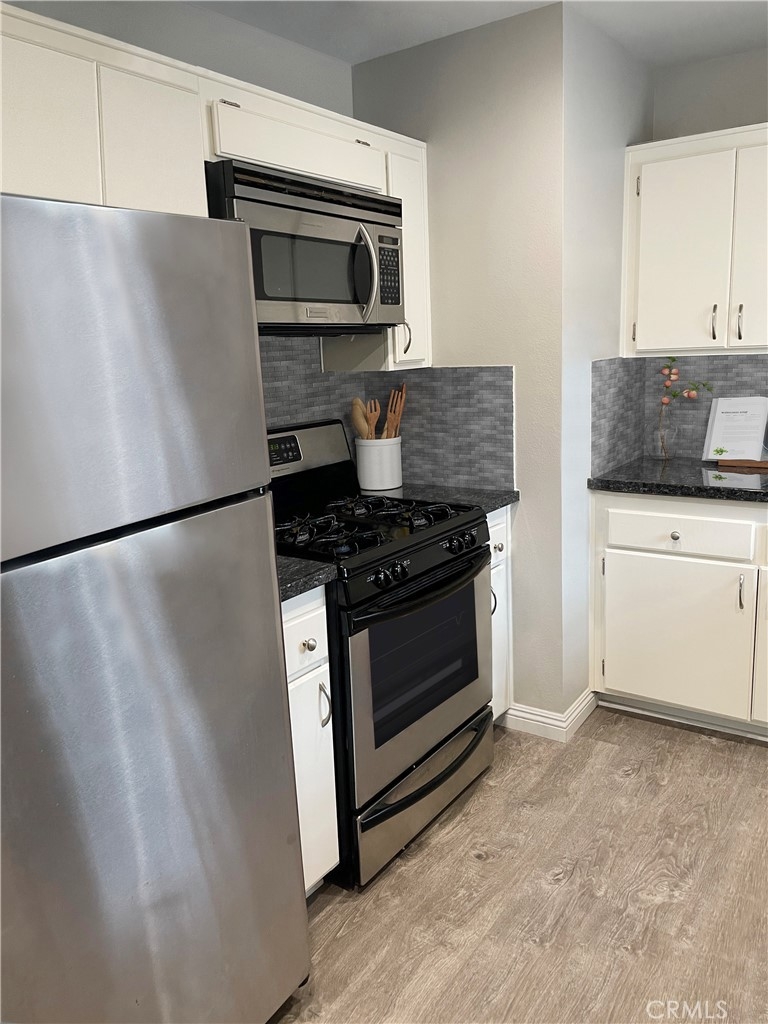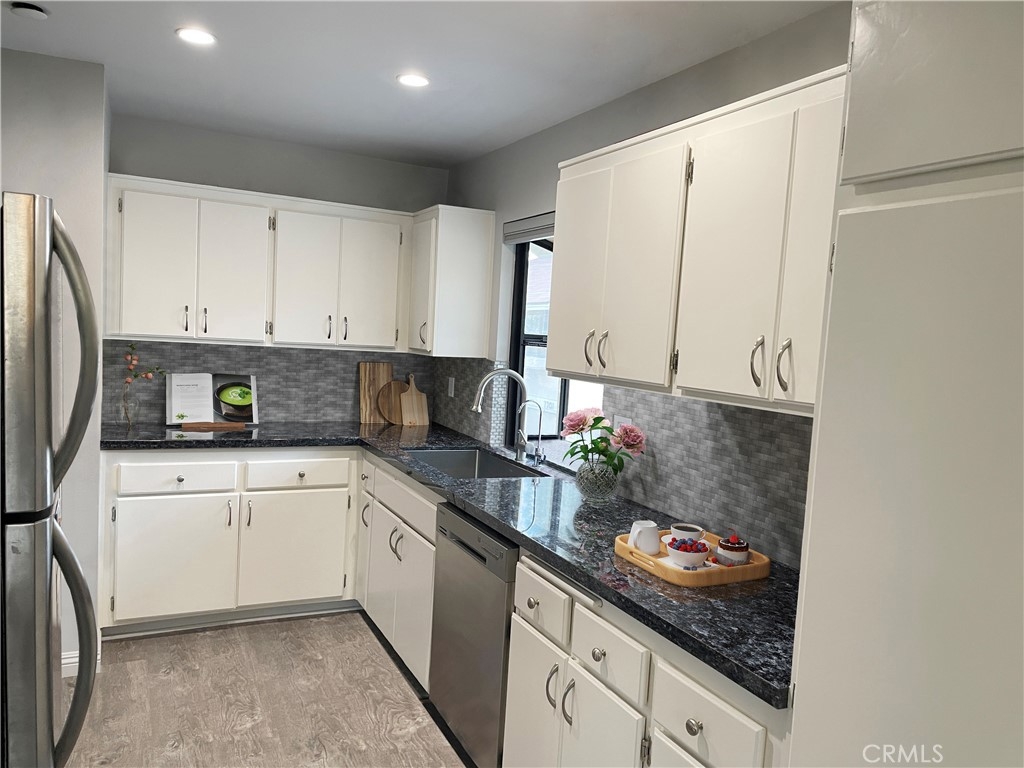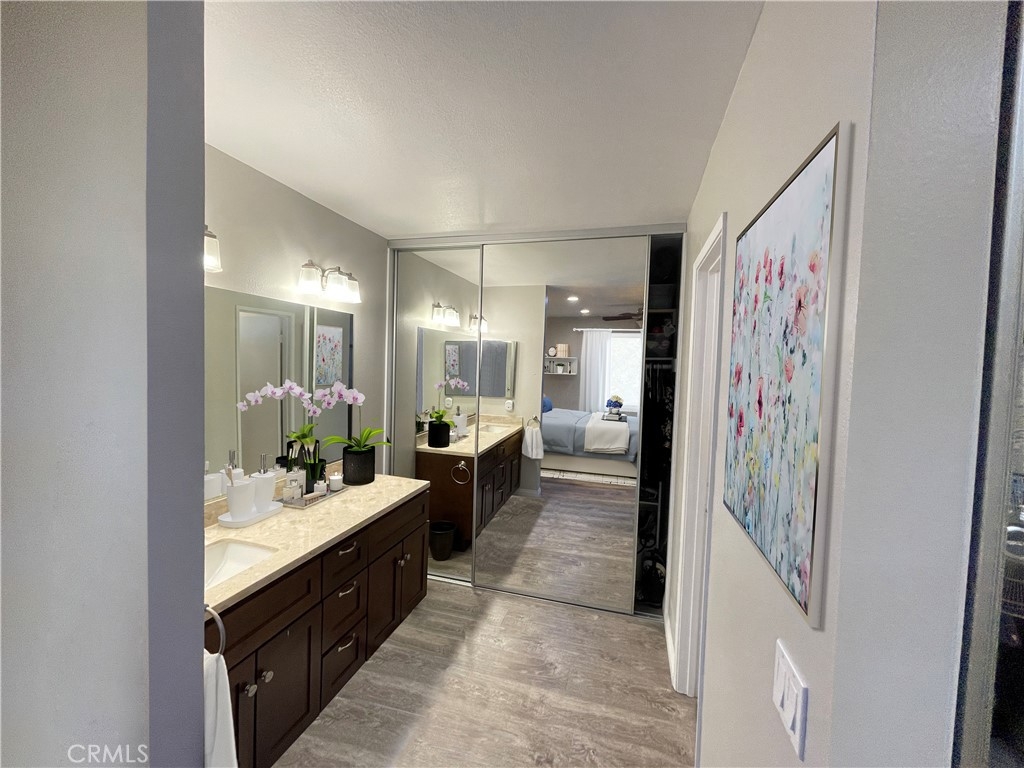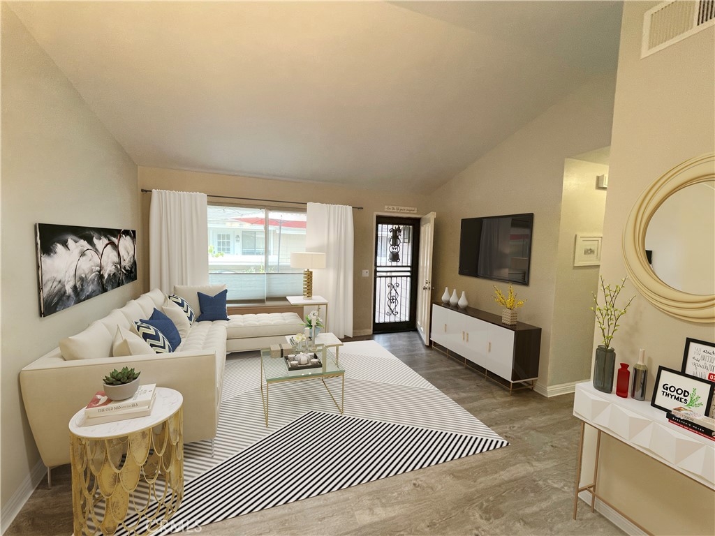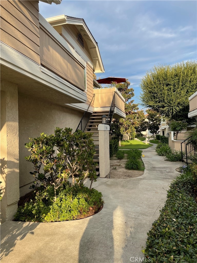 One of the kind 2 Bedroom and 2 baths townhouse style located in Crosspointe Village in the city of Stanton. Nestled on top of the carport parking this condo has no one above or below. Inside the laminate flooring flows through the living room, kitchen and dining area complete with an adorable bay window. Relax on the large front patio and enjoy the open space, with nice flow through the living room, kitchen and dining area. This beautiful unit featuring dual pane white vinyl windows, central air-conditioning, indoor laundry, updated bathrooms, master bedroom and a private balcony. The community offers 24 hour guard gate and multiples pools and spa. This unit is adjacent to a newly Rodeo 39 shopping center boasting eateries, gyms and shopping. Easy access to the freeway.