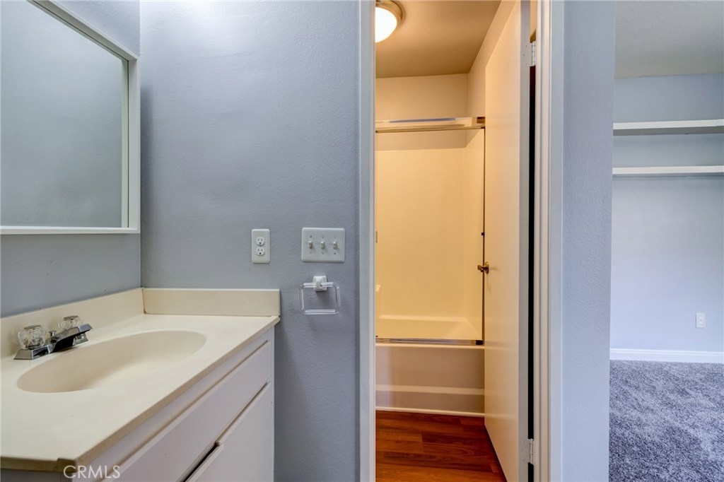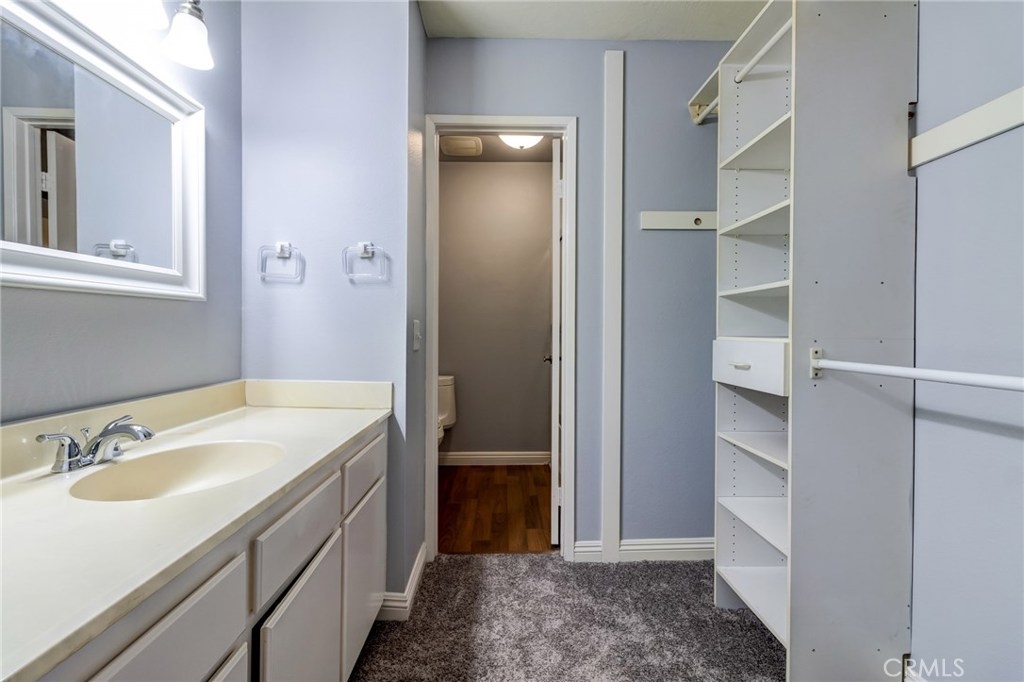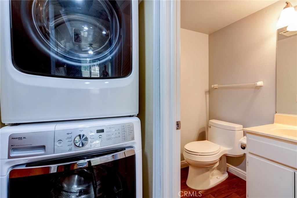 This Rarely Available Floorplan in Cross Point Village of Stanton is a STEAL! As you enter the end unit you are greeted by the inviting living room with new carpet. The kitchen is open to the dining room which is adjacent to the large patio. There is a half bath downstairs for guests. Upstairs you will find two master suites. Some of the updates include recessed lighting central AC, new carpet and paint. The full size stackable washer/dryer and refrigerator will stay in the home. The association is guard gated 24 hours a day, has three pools and ample parking. The cities of Stanton and Garden Grove are in the process of redeveloping the nearby commercial property. In N Out Burger, Raising Cane & Chase Bank include some of the future tenants. The space will also be home to mixed use live/work space.